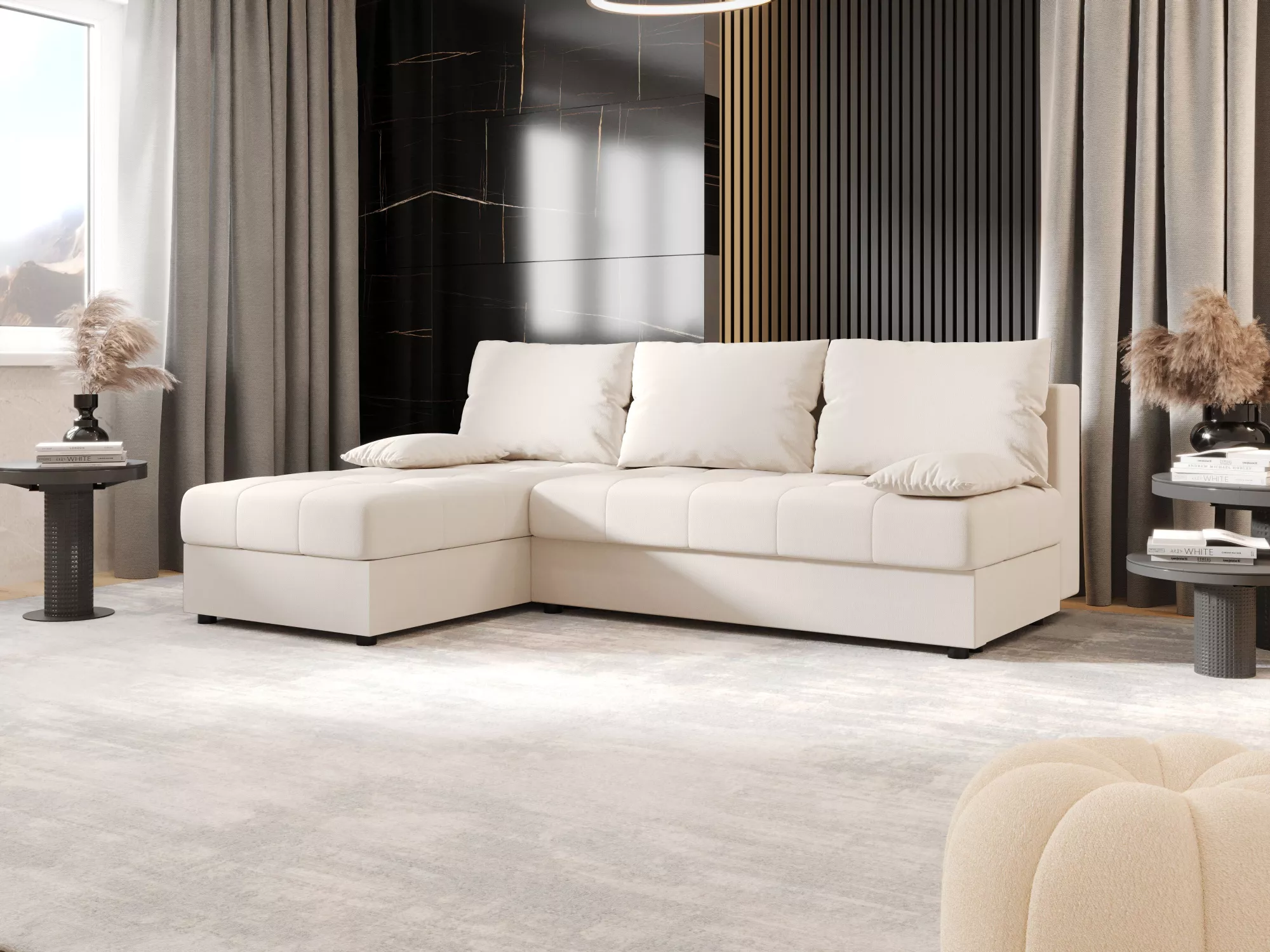 Rozkladacia rohová sedačka ADELINDE - smotanová, ľavý roh