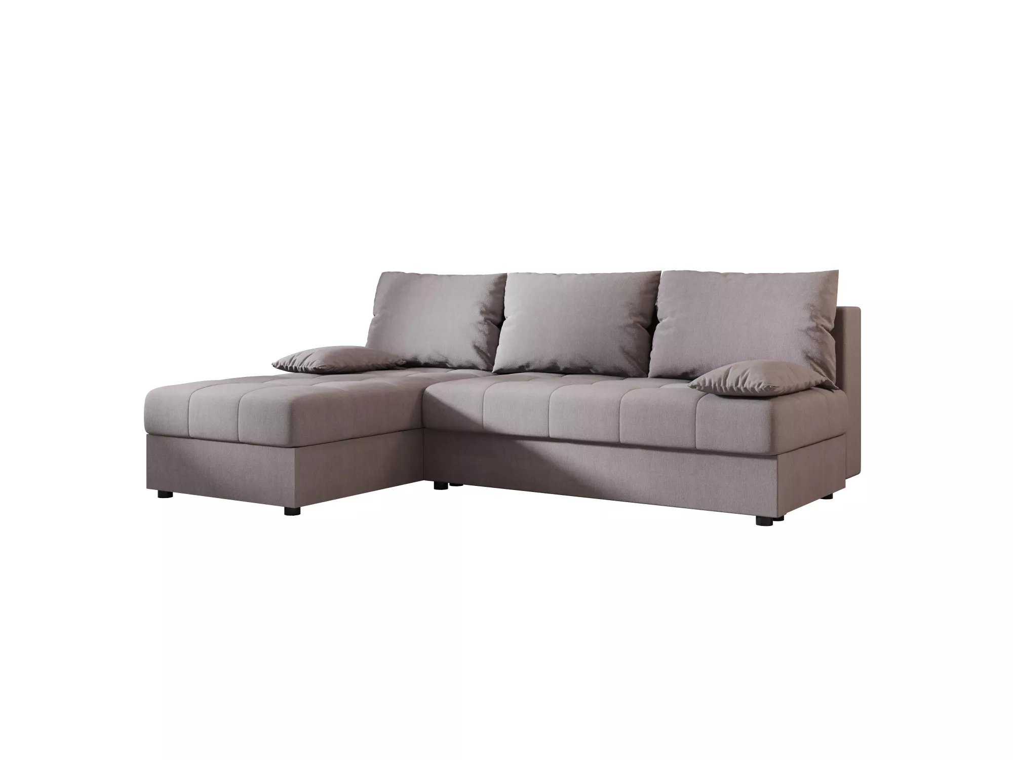 Rozkladacia rohová sedačka ADELINDE má operadlo tvorené voľne loženými vankúšmi, čo zvýši komfort používania a spríjemní každodenné chvíle odpočinku. Disponuje rozkladacou funkciou na lôžko s rozmermi 130x200 cm a nechýba ani praktický úložný priestor na uloženie sezónneho oblečenia alebo lôžkovín.