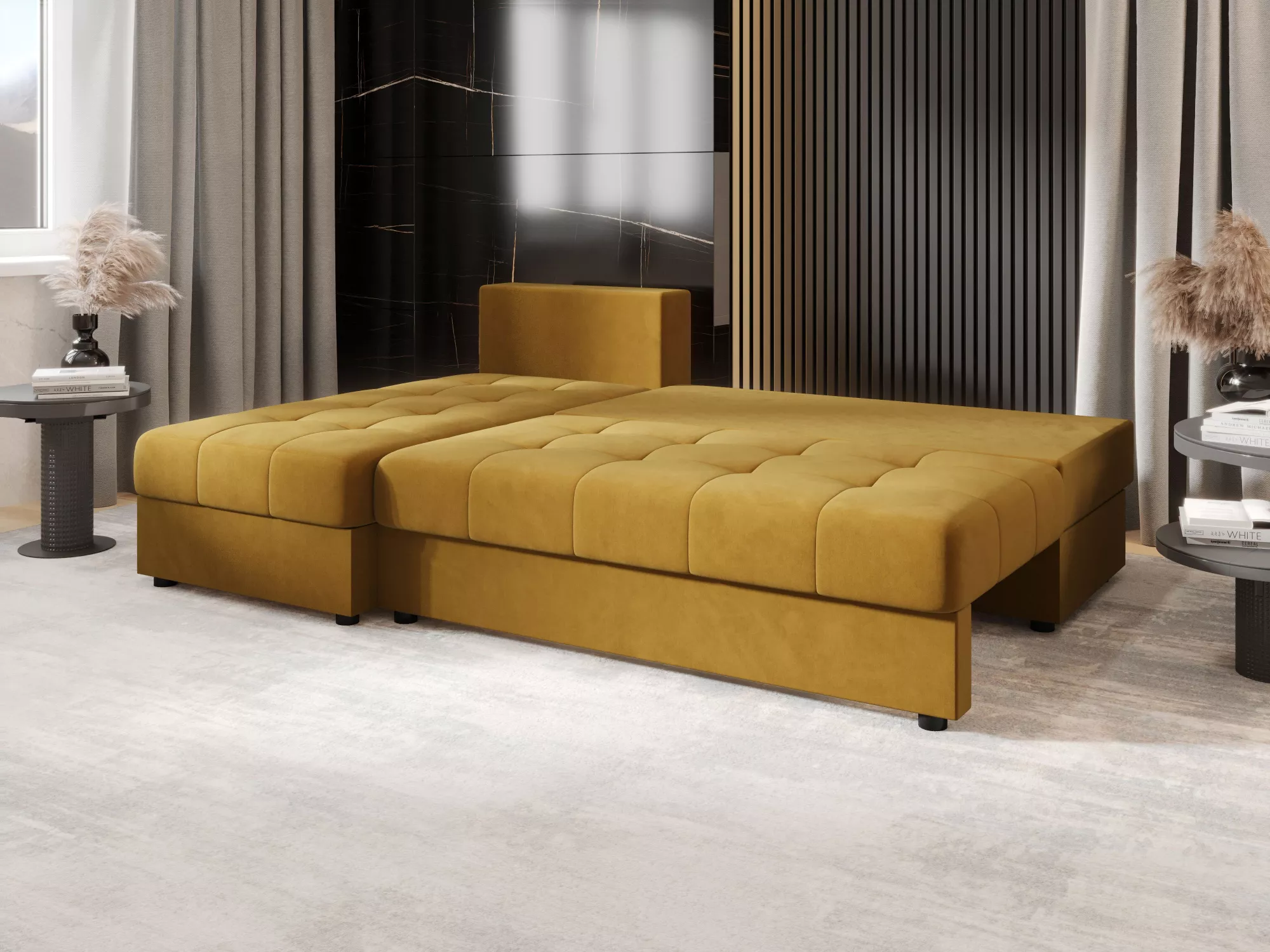 Rozkladacia rohová sedačka ADELINDE - horčicová, ľavý roh