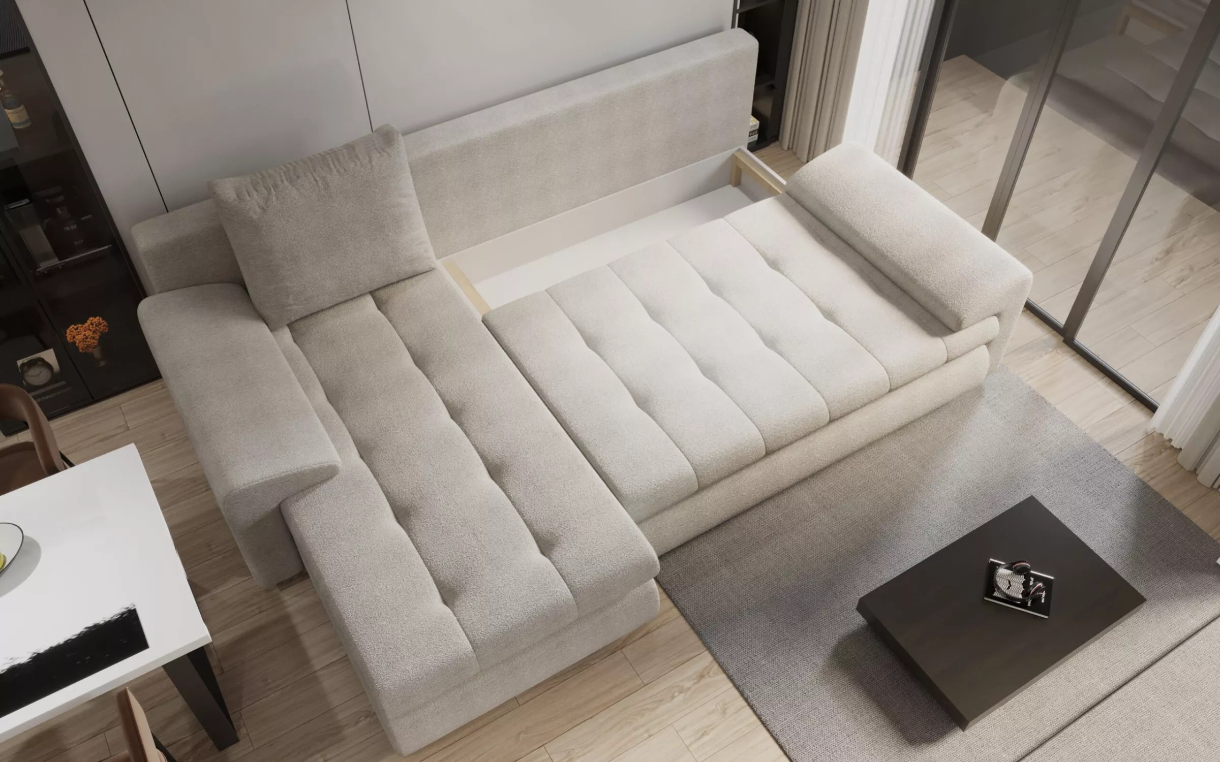 Rozkladacia sedacia súprava BIBIANA 2 zaujme svojím dizajnom v podobe prešívaného sedadla, ktoré jej dodáva jedinečný charakter. Disponuje úložným priestorom, operadlom vo forme voľne ložených vankúšov a rozkladacou funkciou na spaciu plochu s rozmermi 120x200 cm.