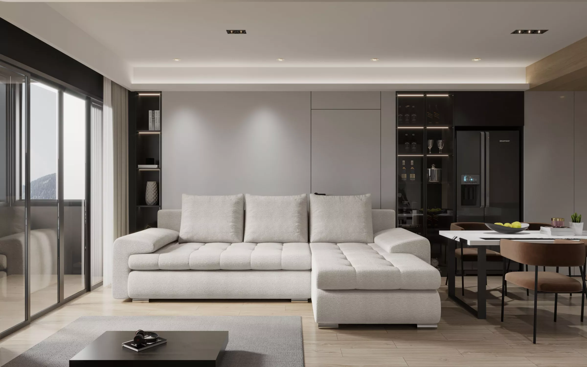 - celočalúnená: áno (potiahnutá rovnakou látkou aj na zadnej strane)