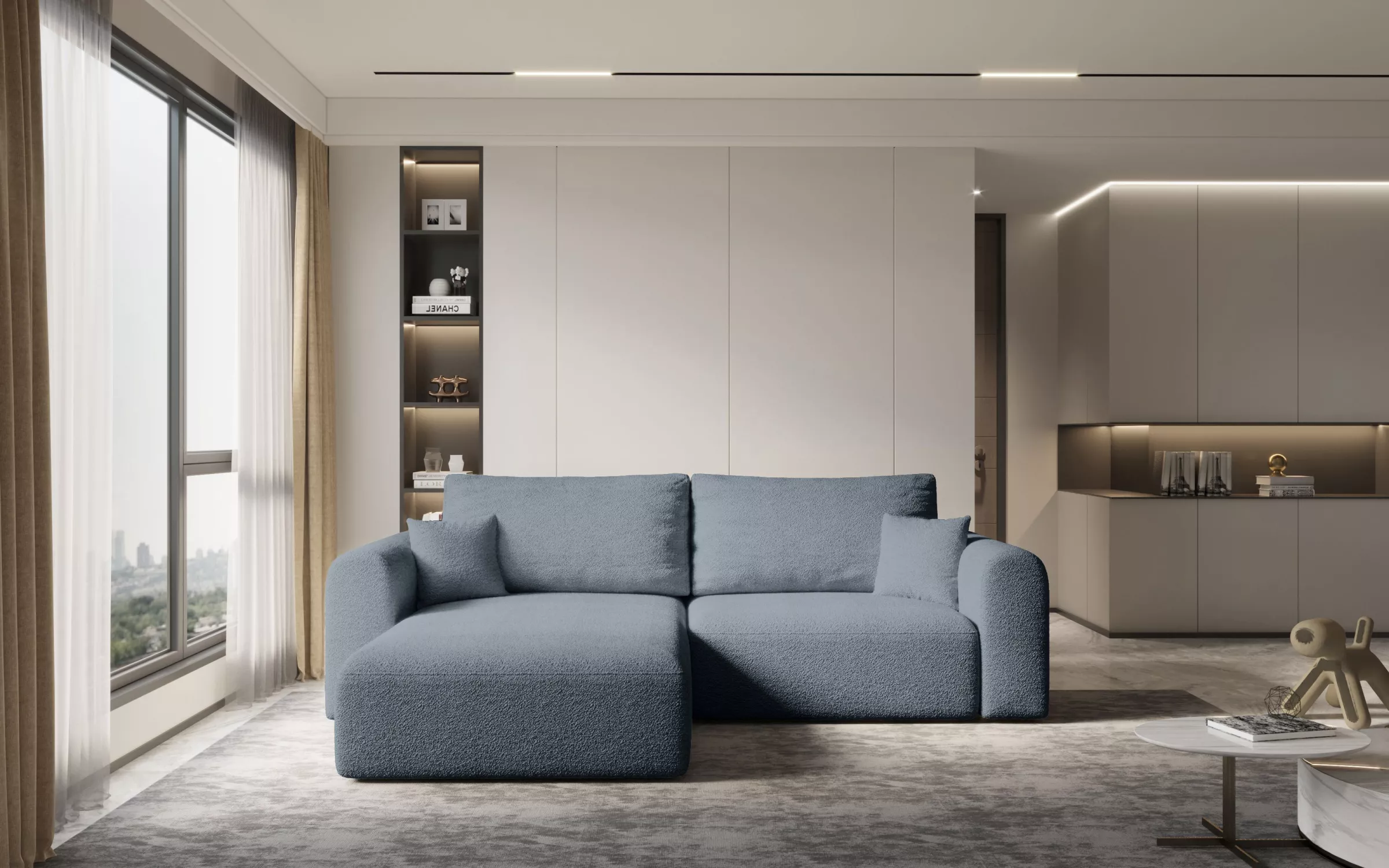 Rohová rozkladacia sedacia súprava ESTEL 2 - šedomodrá, ľavý roh