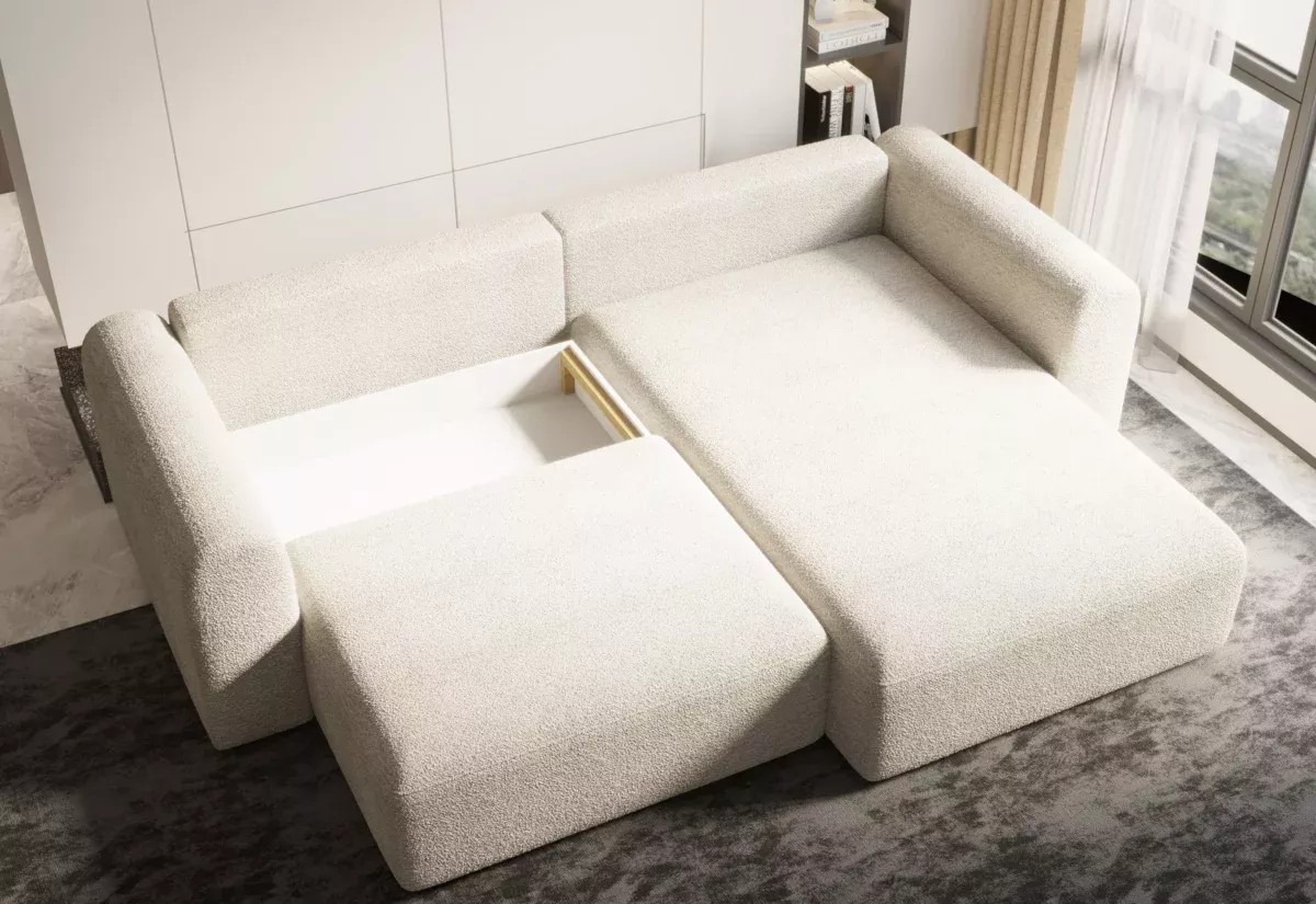 Rohová rozkladacia sedacia súprava ESTEL 2 - biela, ľavý roh