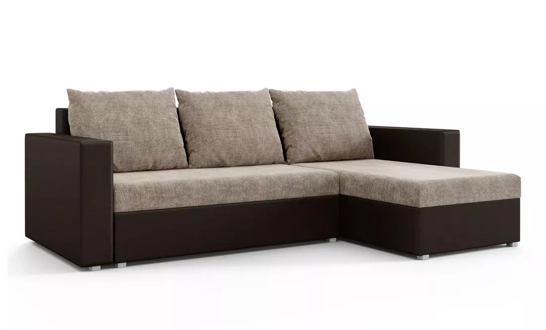Rohová rozkladacia sedačka MOSREN - hnedá ekokoža / cappuccino