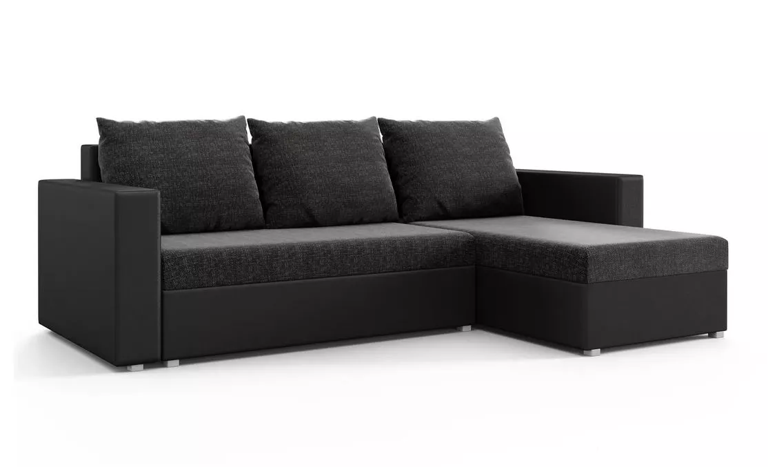 Rohová rozkladacia sedačka MOSREN - čierna ekokoža / čierna