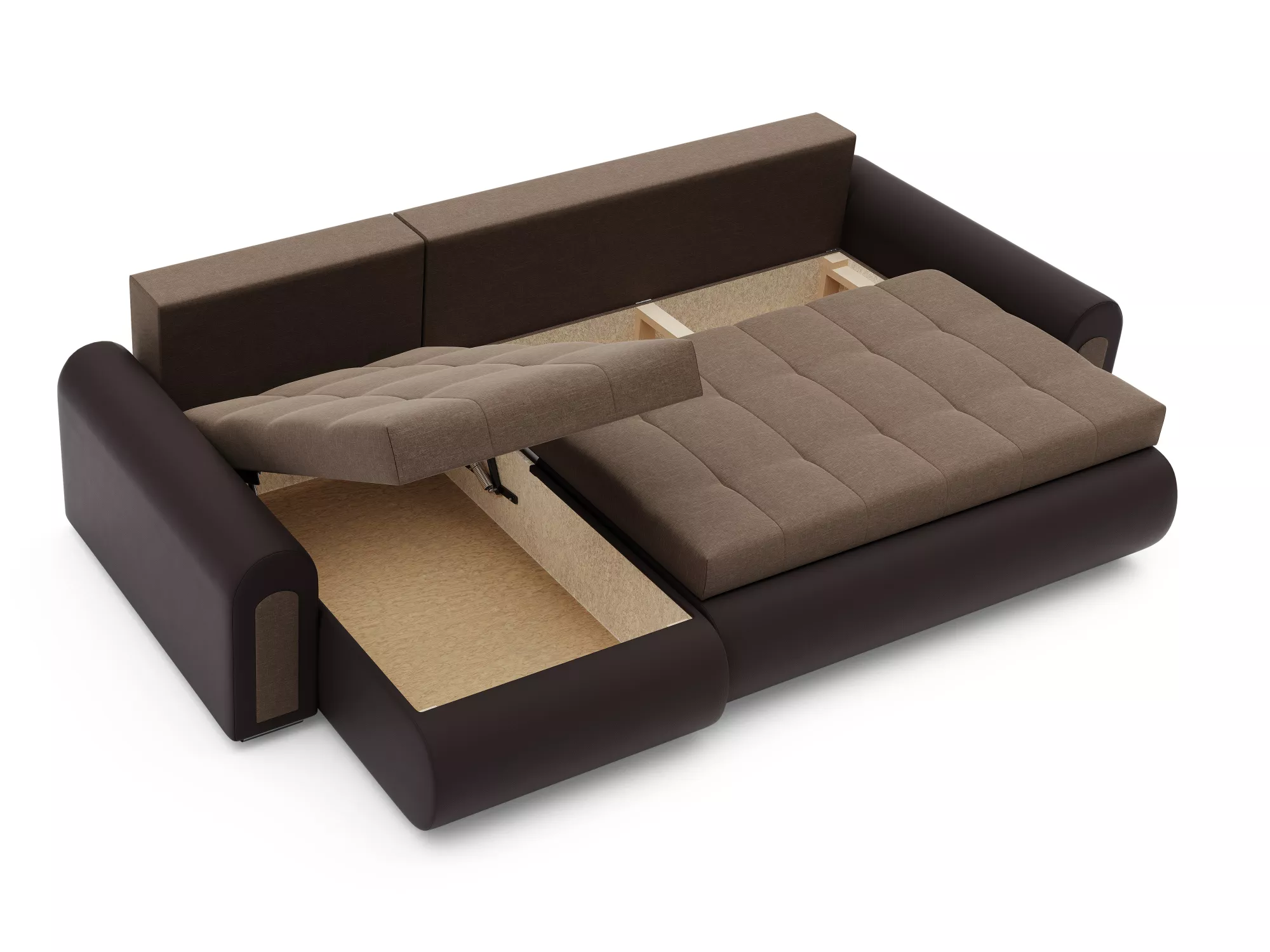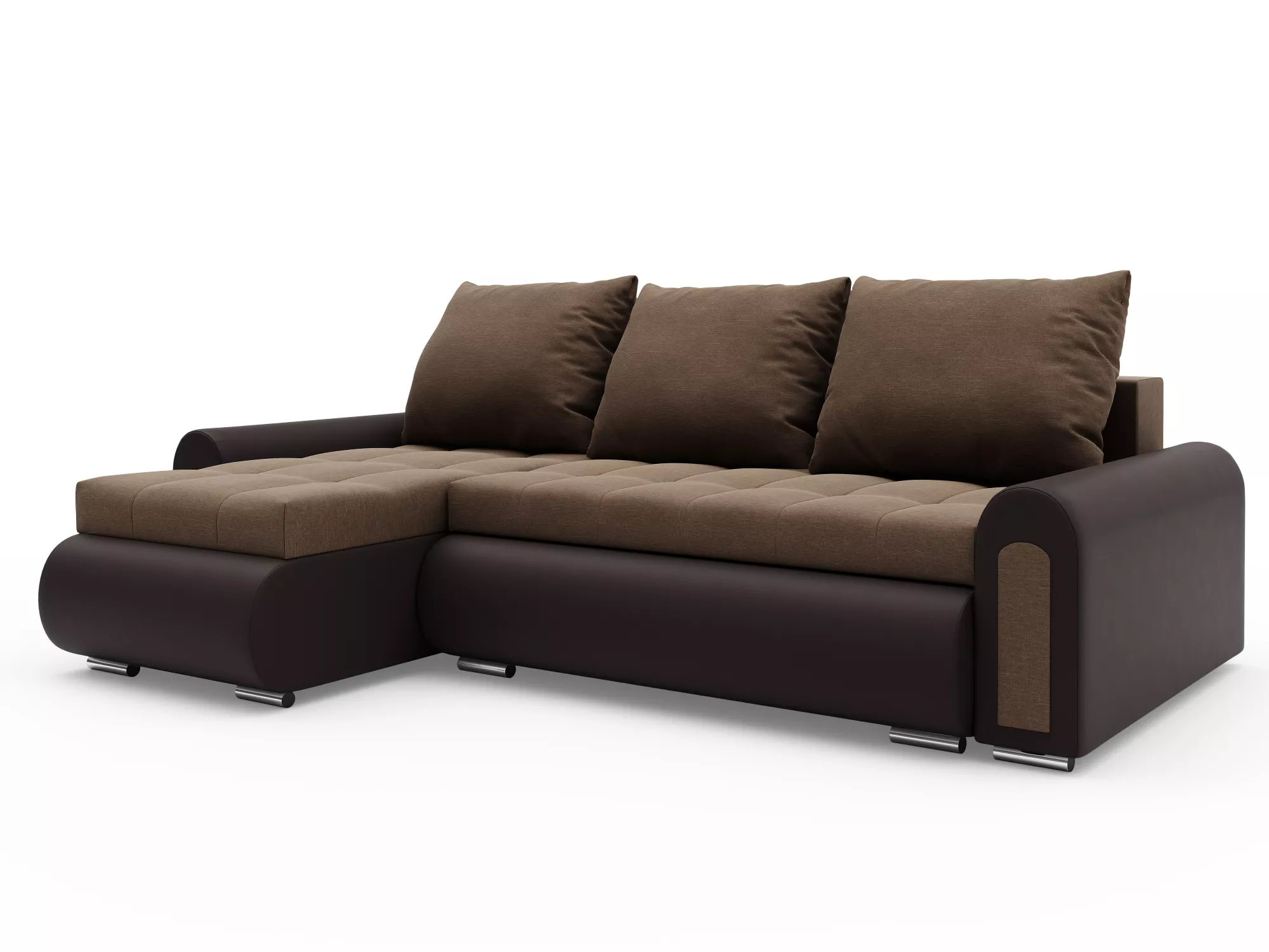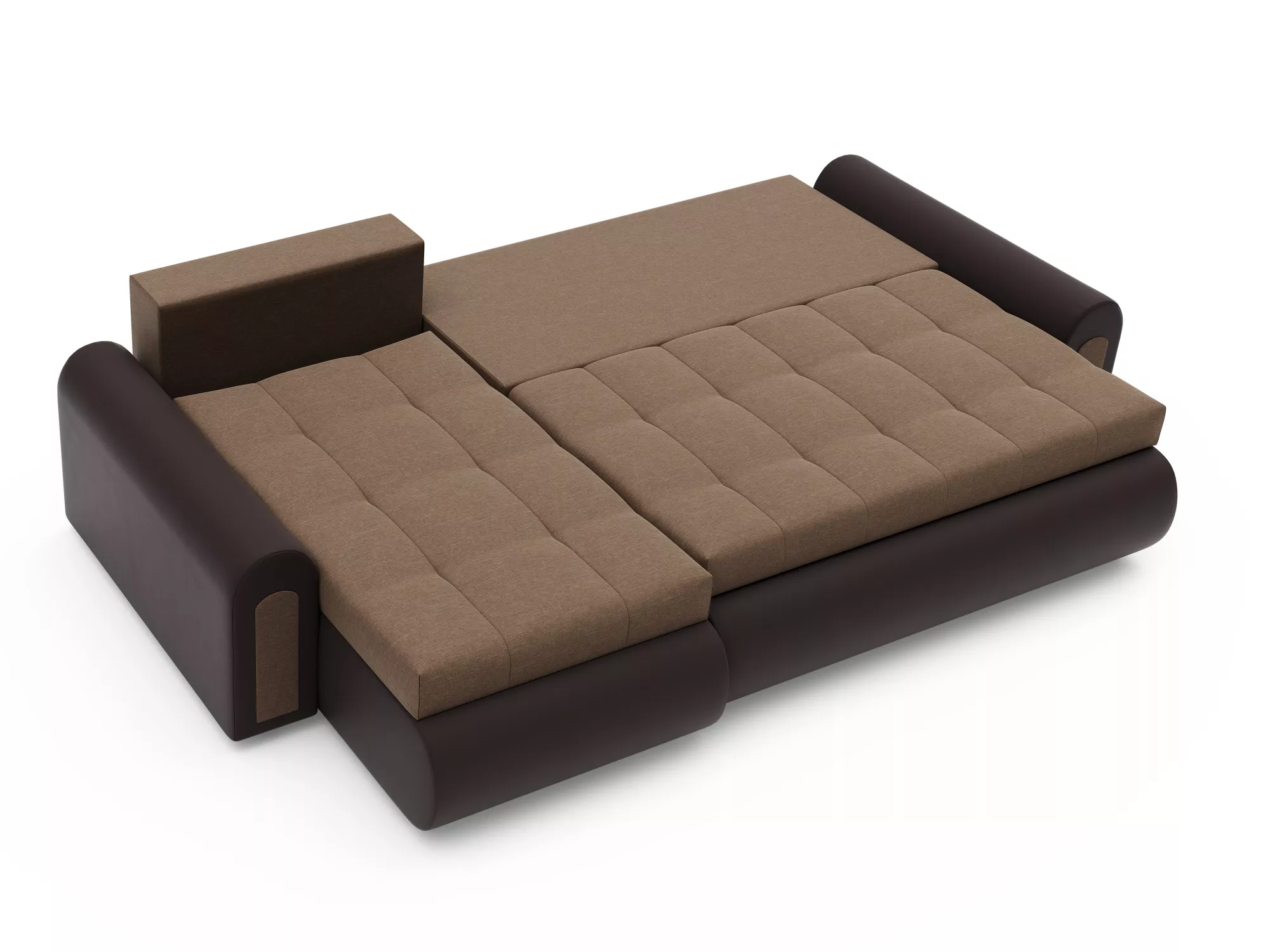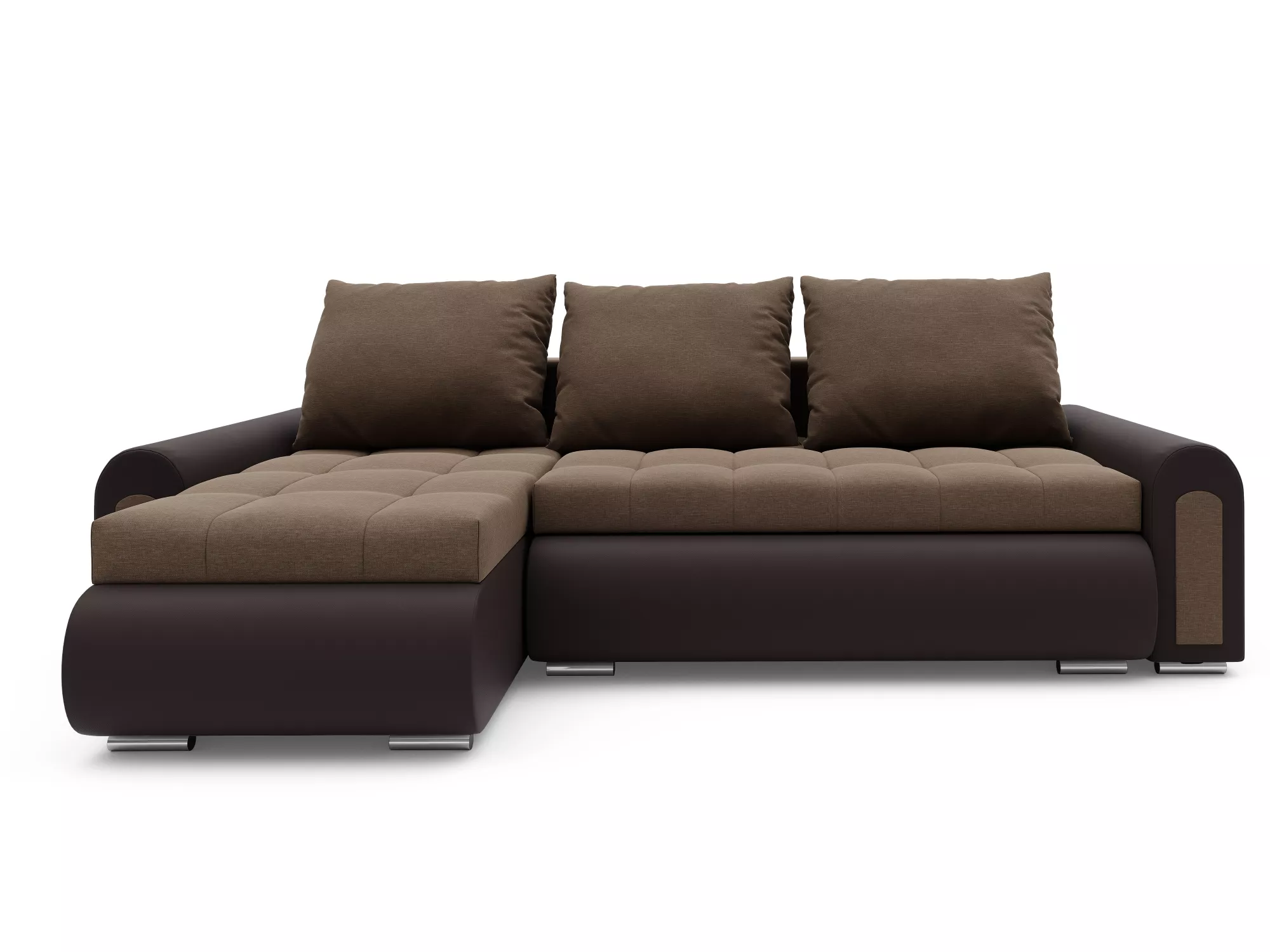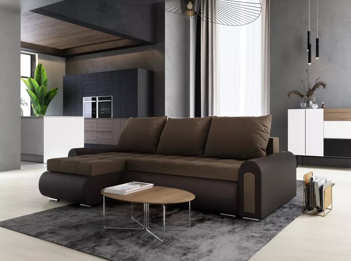 Rozkladacia rohová sedacia súprava EMBERLYN - hnedá ekokoža / béžová