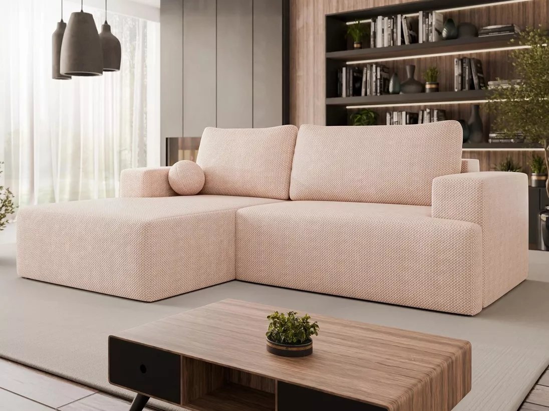 Rohová rozkladacia sedačka ILUDIA - ružová, ľavý roh
