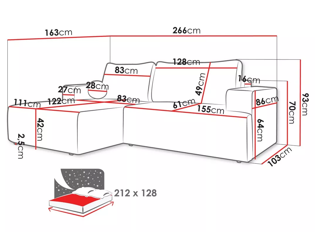Rohová rozkladacia sedačka ILUDIA – moderný kúsok, ktorý premení vašu obývačku na útulné kráľovstvo odpočinku. Vďaka 2 veľkým mäkkým oporným vankúšom si doprajete pohodlie pri každom relaxe, či už pri filme alebo s knižkou v ruke. Praktický úložný priestor ľahko pojme deky, vankúše či sezónne oblečenie a udrží váš domov dokonale uprataný. A keď potrebujete viac miesta na spanie, behom chvíľky sedačku rozložíte na lôžko o veľkosti 128×212 cm.
