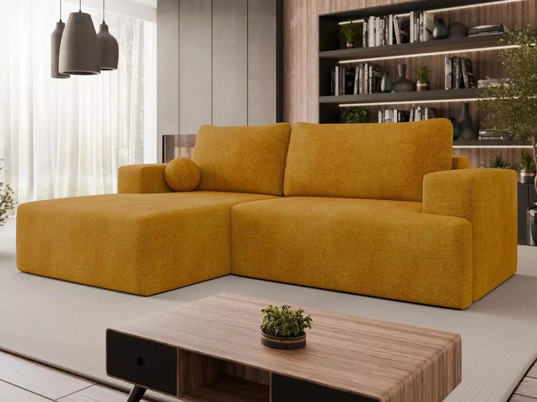 Rohová rozkladacia sedačka ILUDIA - žltá, ľavý roh