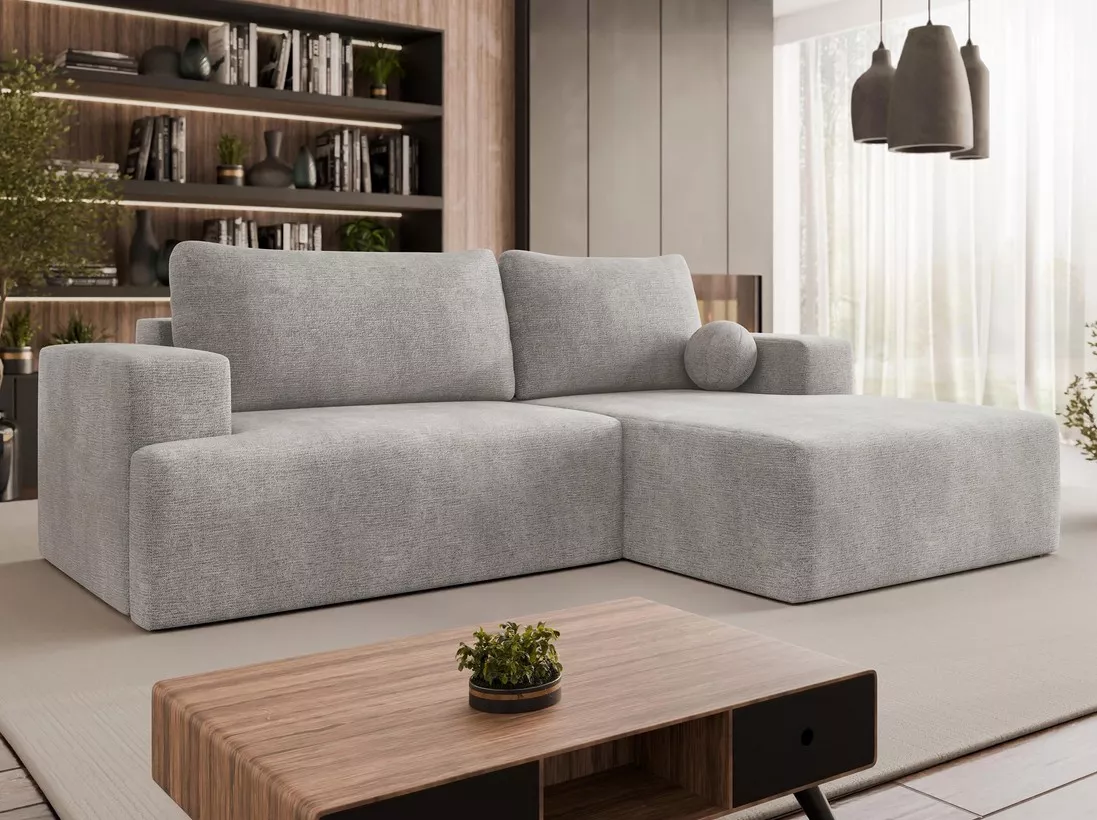 Rohová rozkladacia sedačka ILUDIA - strieborná, pravý roh
