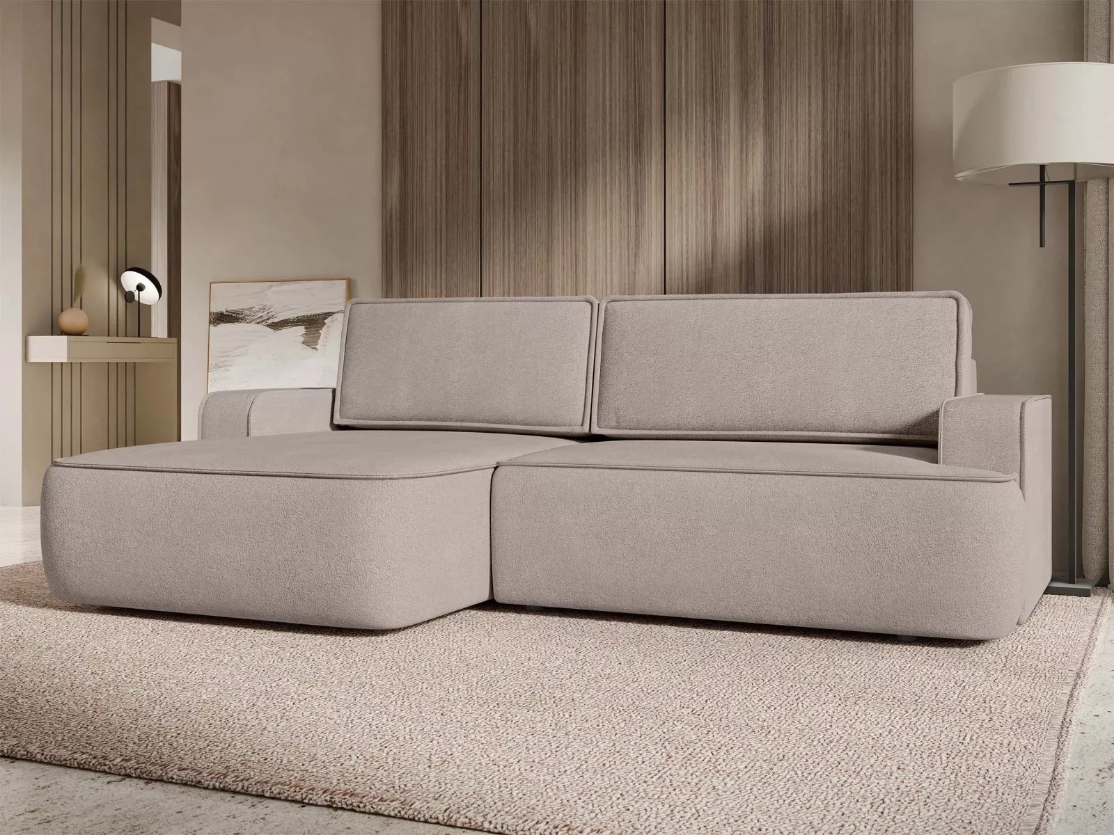 Rozkladacia rohová sedačka s úložným priestorom BELLEVUE - béžovohnedá, ľavý roh