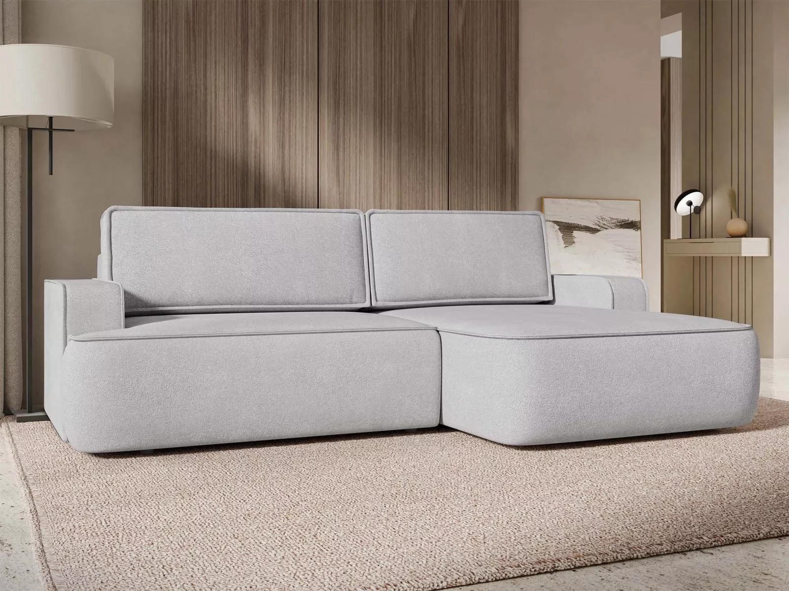Rozkladacia rohová sedačka s úložným priestorom BELLEVUE - svetlá šedá, pravý roh