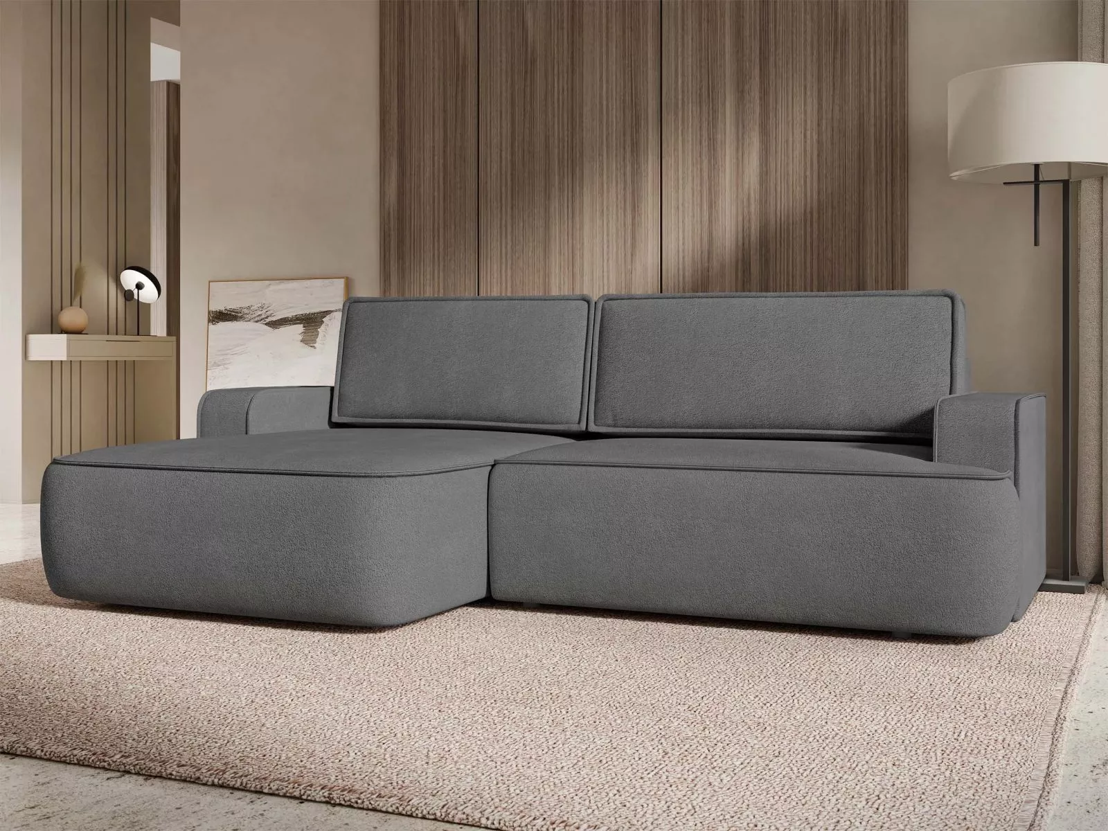 Rozkladacia rohová sedačka s úložným priestorom BELLEVUE - tmavá šedá, ľavý roh