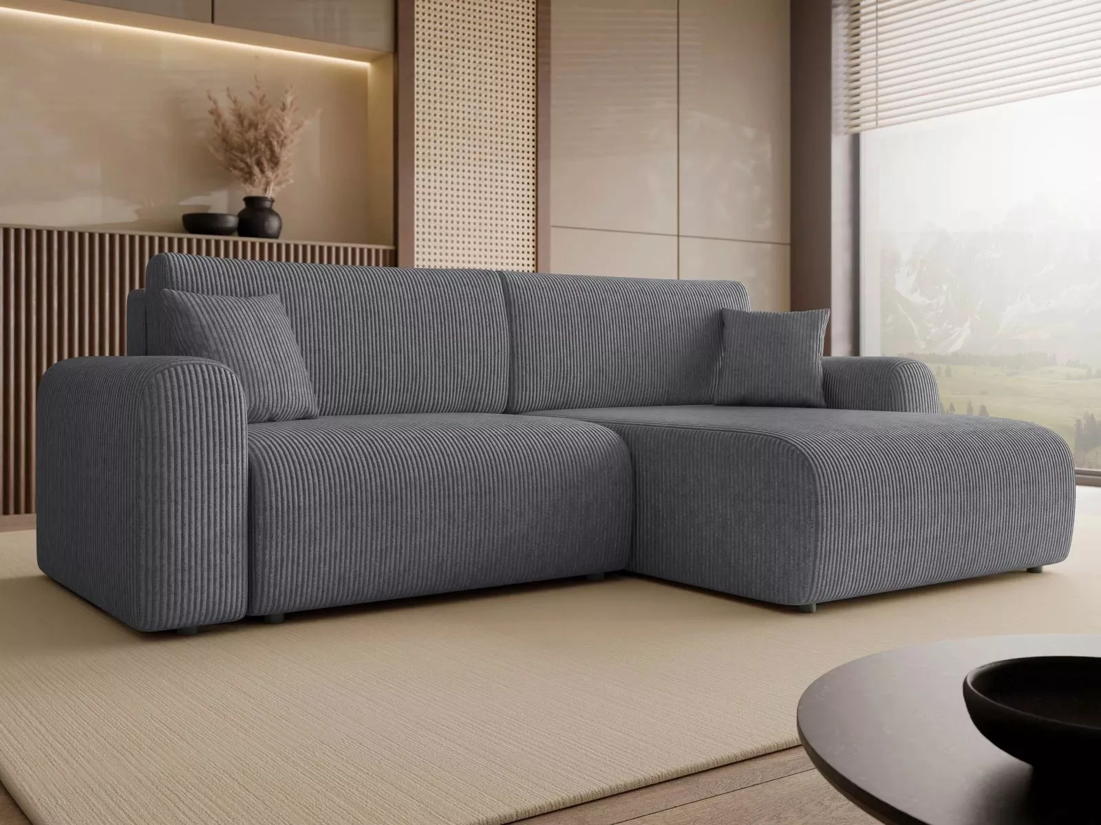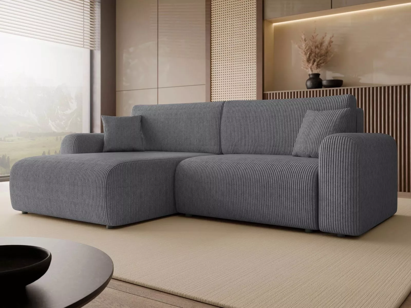 Doprajte si maximálne pohodlie s rohovou pohovkou VELISO, ktorá sa stane srdcom vašej obývačky. Rozkladacia funkcia poskytne miesto na pohodlné spanie alebo uloženie hostí, zatiaľ čo praktický úložný priestor pojme posteľnú bielizeň aj prikrývky. Priestranné sedáky lákajú k odpočinku po náročnom dni. Moderný dizajn s čistými líniami sa ľahko zladí s akýmkoľvek štýlom interiéru.