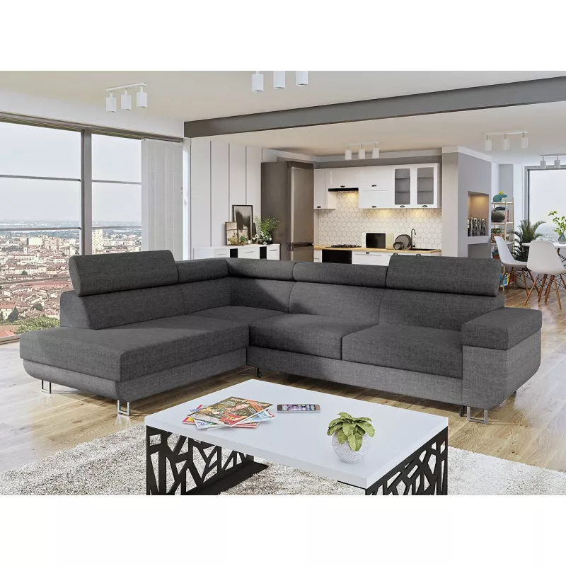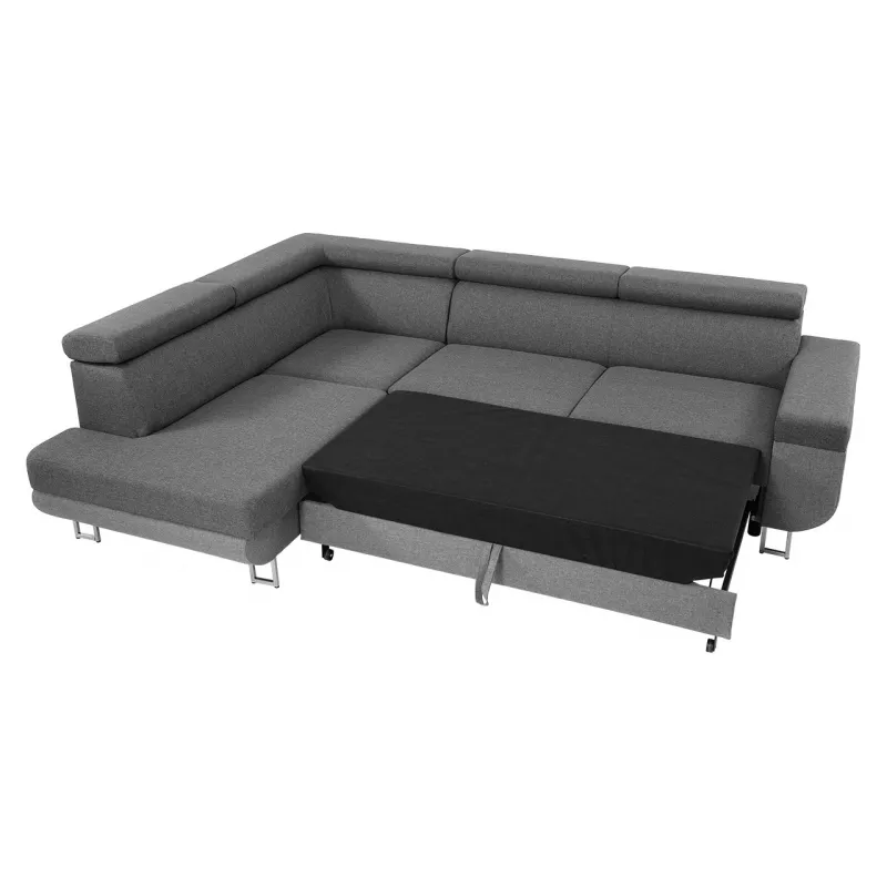 Rohová sedacia súprava zaujme svojou funkčnosťou. Bola skonštruovaná ako písmeno L, čo znamená, že má dostatok priestoru na sedenie pre hostí a sledovanie televízie v ľahu. Sedačka disponuje nastaviteľnými opierkami hlavy. Jednoduchým rozložením získate spaciu plochu o rozmeroch 128 x 195 cm. Zadná časť rohu je čalúnená látkou, čo umožňuje jej umiestnenie kdekoľvek v miestnosti. V sedacej súprave je umiestnený praktický úložný priestor na ložnú bielizeň, ktorý môže slúžiť taktiež ako miesto pre sezónne oblečenie.