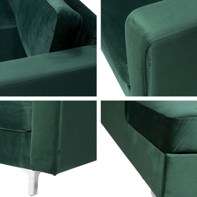Rohová sedacia súprava CHOWAN 2 je elegantný model čalúnený módnou lesklou zamatovou tkaninou, ktorá je na dotyk veľmi príjemná a mäkká. Sedačka, ktorá je k dispozícii v najmódnejšej farebnej kombinácii, skrášli interiér vyzdobený v modernom štýle.