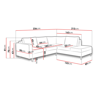 Sedacia súprava bola skonštruovaná ako písmeno L, čo znamená, že má dostatok priestoru na sedenie pre hostí a sledovanie televízie v ľahu.