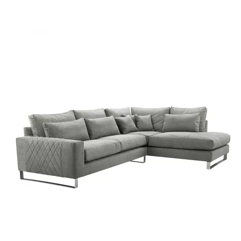 Vysoké kovové nohy v chrómovej farbe dodávajú sedačke ľahkosť. Ďalším dekoratívnym prvkom je prešívanie, ktoré vedie pozdĺž lakťovej opierky. Sedadlo sedačky je vyrobené z vrstvy vysoko elastickej peny, penového granulátu a vlnových pružín typu A. Takáto kombinácia zaručuje vysoký komfort používania. Na druhej strane je operadlo sedačky vyrobené z pohyblivých vankúšov rôznych veľkostí. Obliečky na vankúš majú zips.