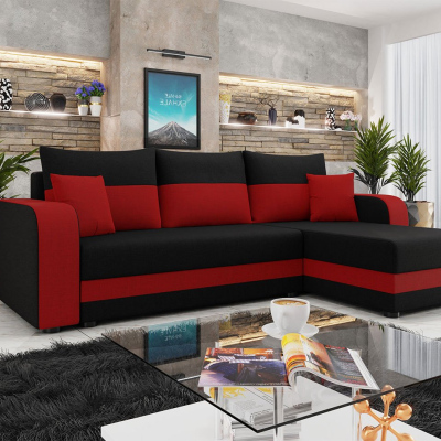 Rohová sedačka na každodenné spanie HORING - čierna / červená