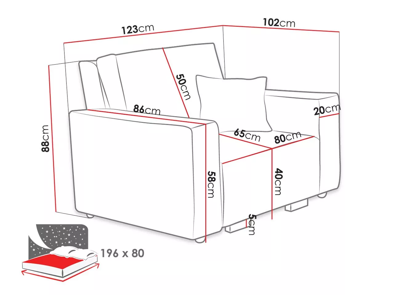 - ložná plocha: 80x196 cm