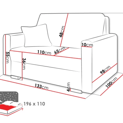 Dvojmiestna rozkladacia pohovka PENN 1 zaujme svojim moderným minimalistickým dizajnom. Nespornou výhodou pohovky je možnosť rozloženia na lôžko s rozmermi 110x196 cm. Samozrejmosťou je aj praktický úložný priestor.