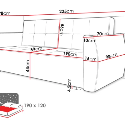 Rozkladacia trojmiestna pohovka KILGORE spája funkčnosť, pohodlie a eleganciu. Pohovka je vybavená funkciou každodenného spania o lôžku 120x190 cm a úložným priestorom na lôžkoviny. Poťahová menčestrová látka je príjemná na dotyk a taktiež odolná voči opotrebovaniu.