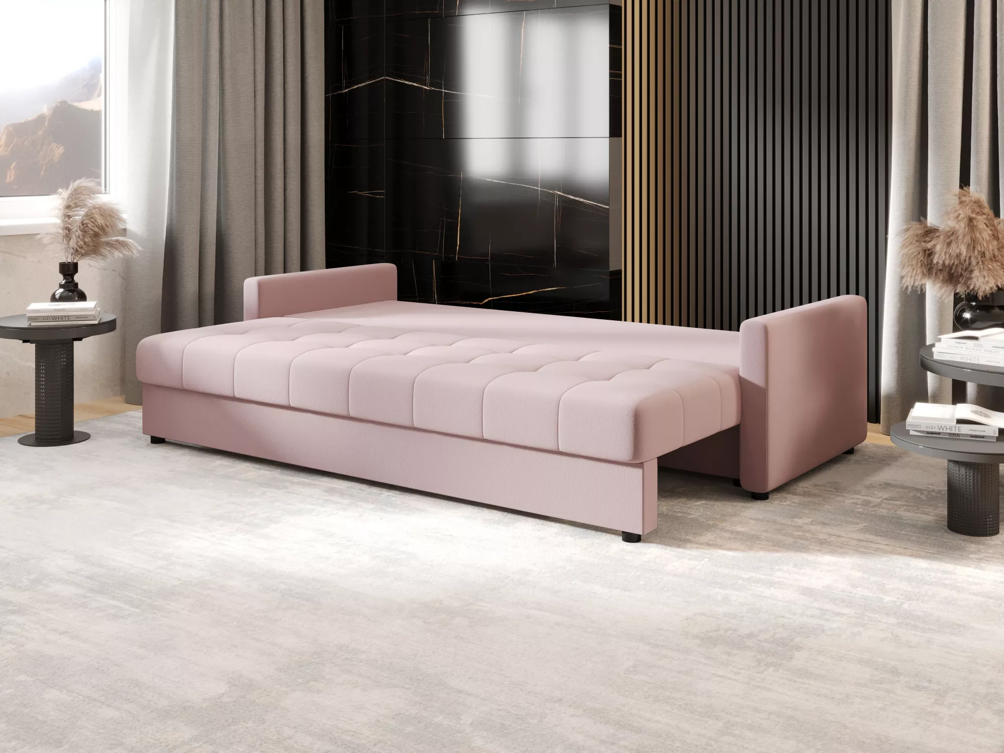 Rozkladacia pohovka ADELINDE má operadlo tvorené voľne loženými vankúšmi, čo zvýši komfort používania a spríjemní každodenné chvíle odpočinku. Disponuje rozkladacou funkciou na lôžko s rozmermi 130x200 cm a nechýba ani praktický úložný priestor na uloženie sezónneho oblečenia alebo lôžkovín.