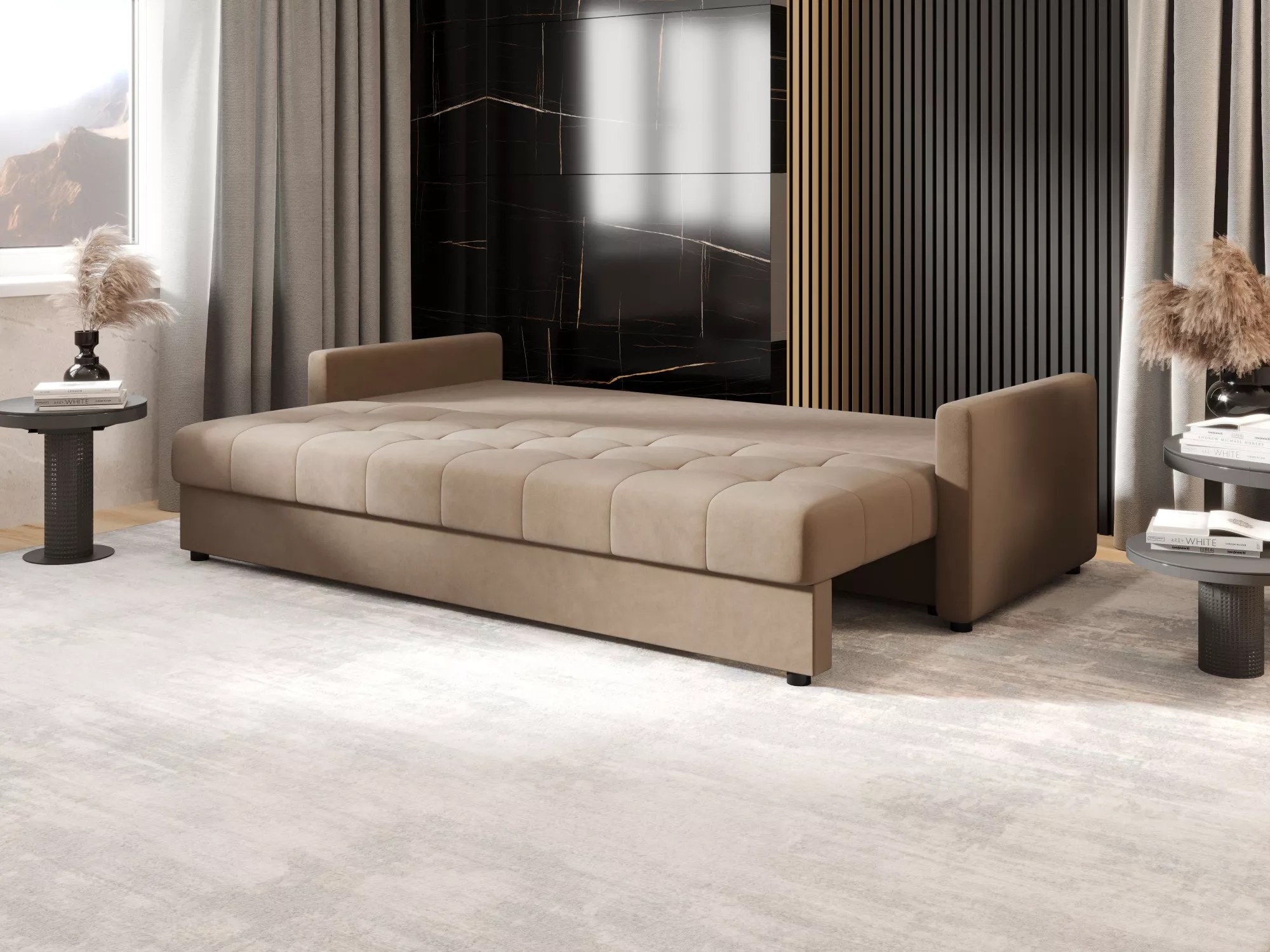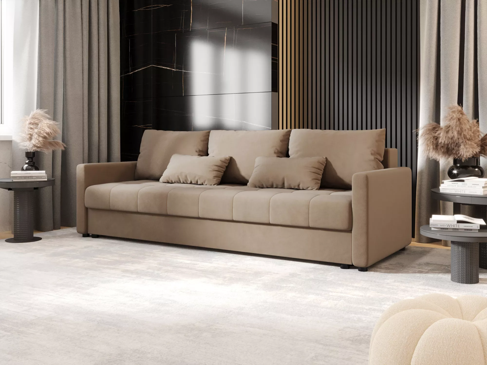 Rozkladacia pohovka ADELINDE má operadlo tvorené voľne loženými vankúšmi, čo zvýši komfort používania a spríjemní každodenné chvíle odpočinku. Disponuje rozkladacou funkciou na lôžko s rozmermi 130x200 cm a nechýba ani praktický úložný priestor na uloženie sezónneho oblečenia alebo lôžkovín.