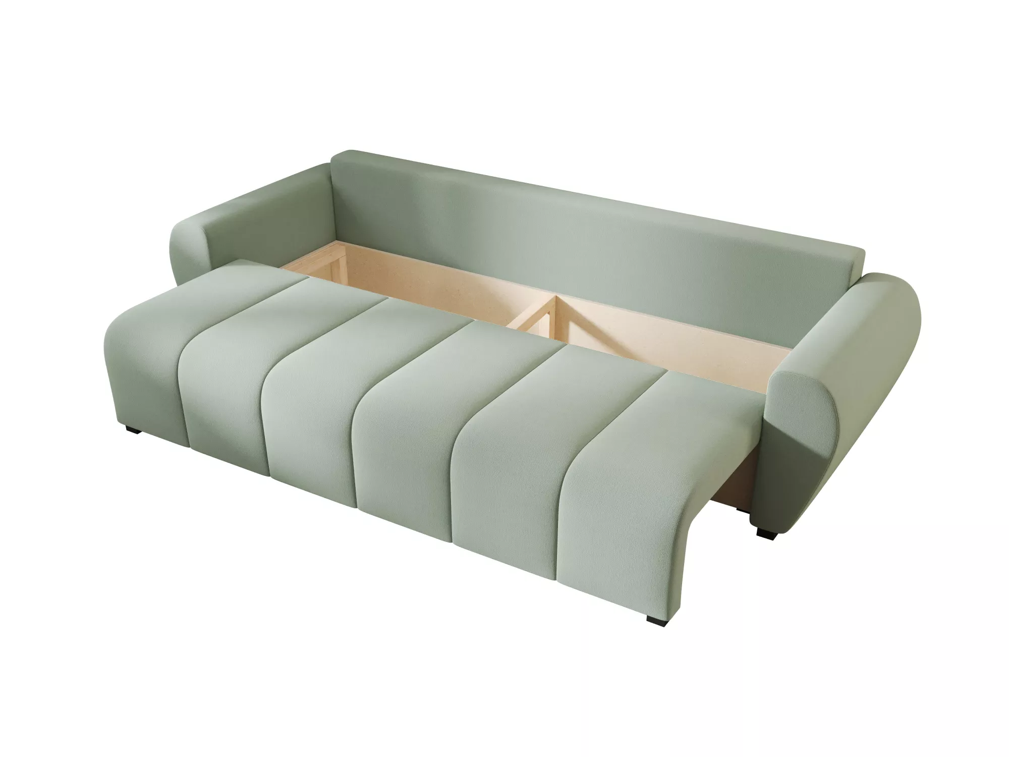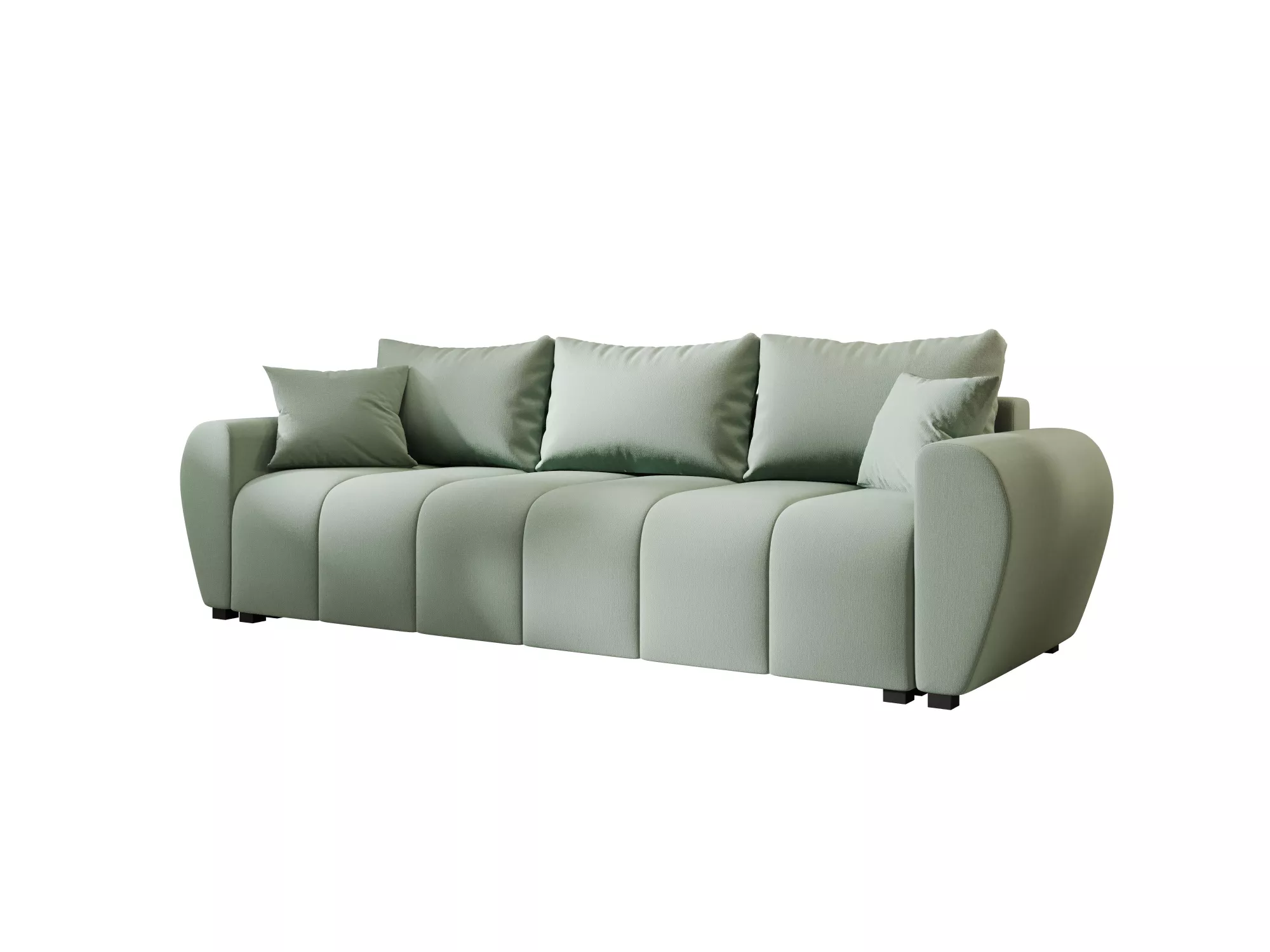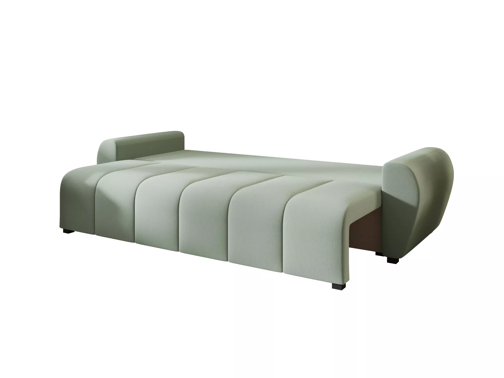 Rozkladacia pohovka LUKAVA na prvý pohľad zaujme svojími zaoblenými bokmi a prešívaným sedákom. Pohovka disponuje rozkladacou funkciou na lôžko s rozmermi 130x200 a úložným priestorom. Zadná časť pohovky je čalúnená totožnou látkou, čo umožňuje jej umiestnenie kdekoľvek v miestnosti.