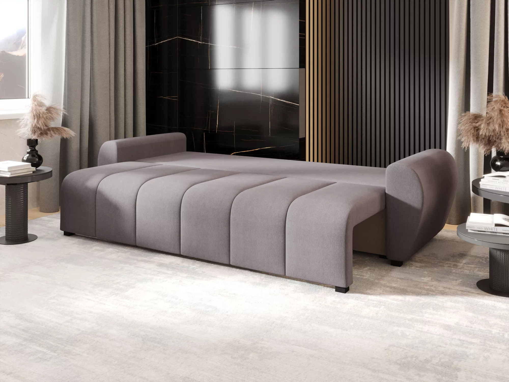 Rozkladacia pohovka LUKAVA na prvý pohľad zaujme svojími zaoblenými bokmi a prešívaným sedákom. Pohovka disponuje rozkladacou funkciou na lôžko s rozmermi 130x200 a úložným priestorom. Zadná časť pohovky je čalúnená totožnou látkou, čo umožňuje jej umiestnenie kdekoľvek v miestnosti.