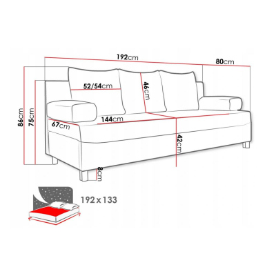 Viacmiestna pohovka Elza zaujme svojou eleganciou a skvele zapadne do moderného interiéru. Navyše je možné ju rozložiť na komfortné lôžko s priestorom na spanie 133 x 192 cm. V pohovke sa nachádza praktický úložný priestor na posteľnú bielizeň, ktorý môže tiež slúžiť ako miesto na sezónne oblečenie. Zadná časť je čalúnená látkou, čo umožňuje jej umiestnenie kdekoľvek v miestnosti.