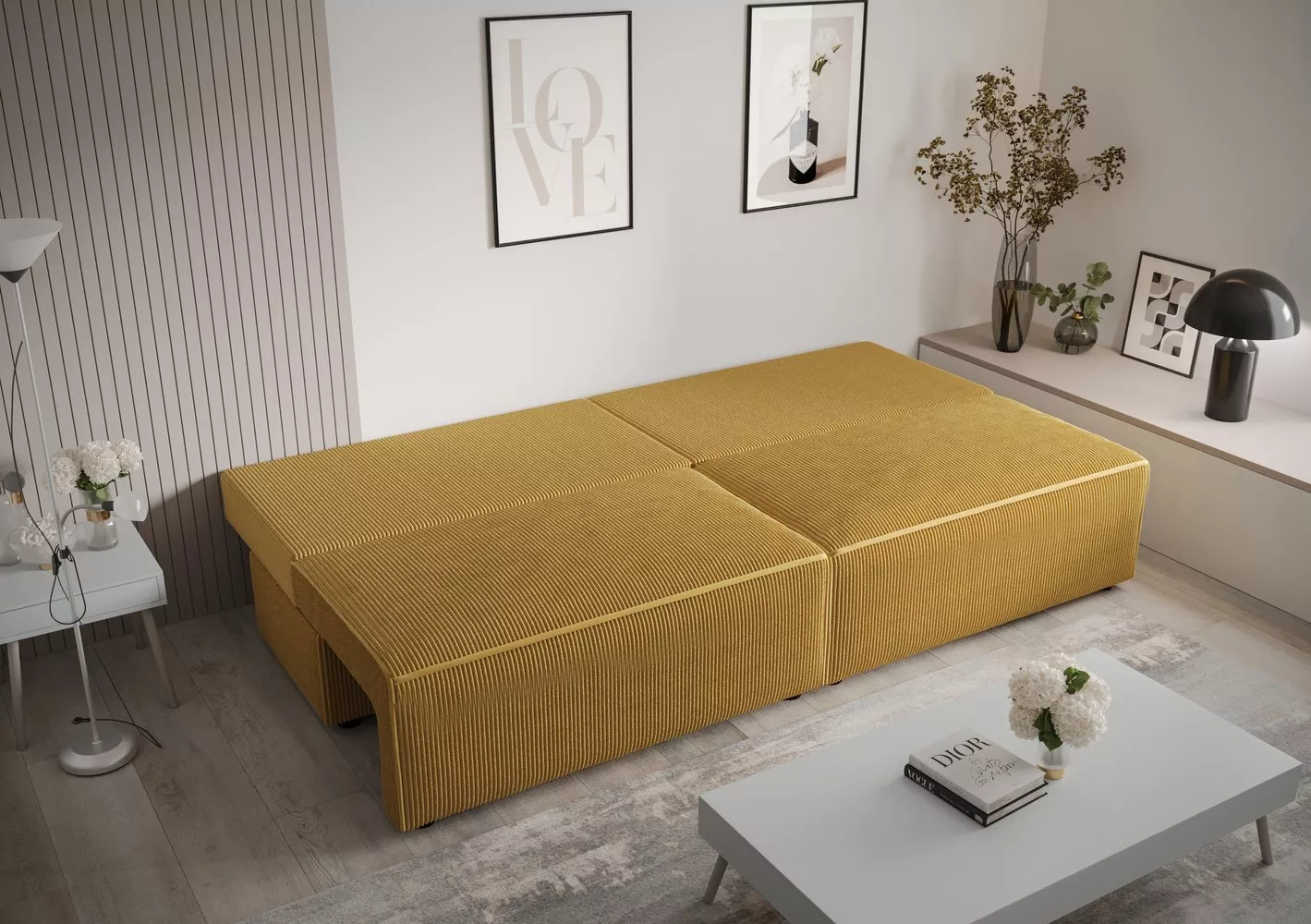 Jednoduché línie, čistý dizajn a štýlové prešívanie pohovky RADANA ozdobia akúkoľvek miestnosť. Samozrejmosťou je úložný priestor a funkcia rozkladu.