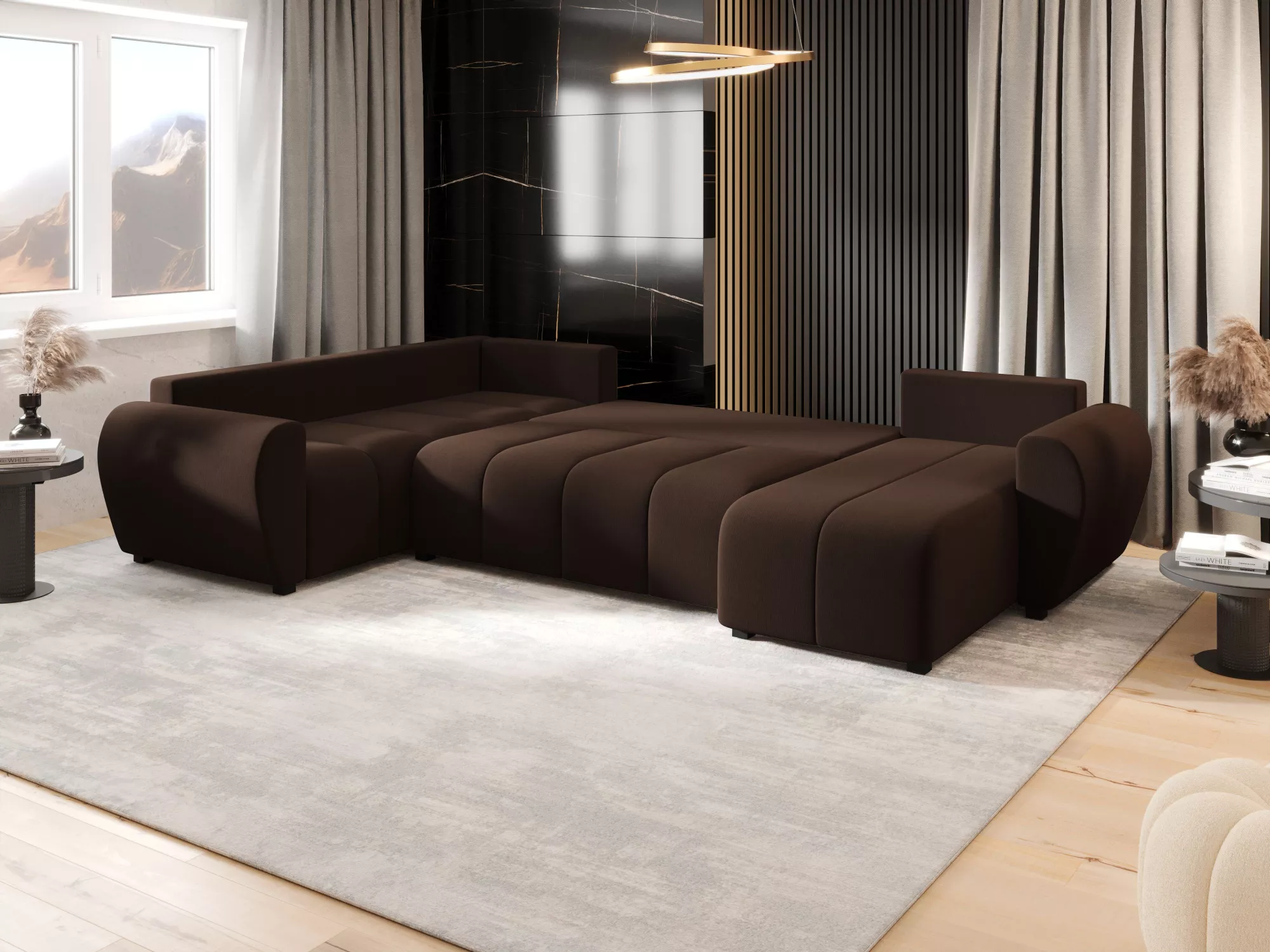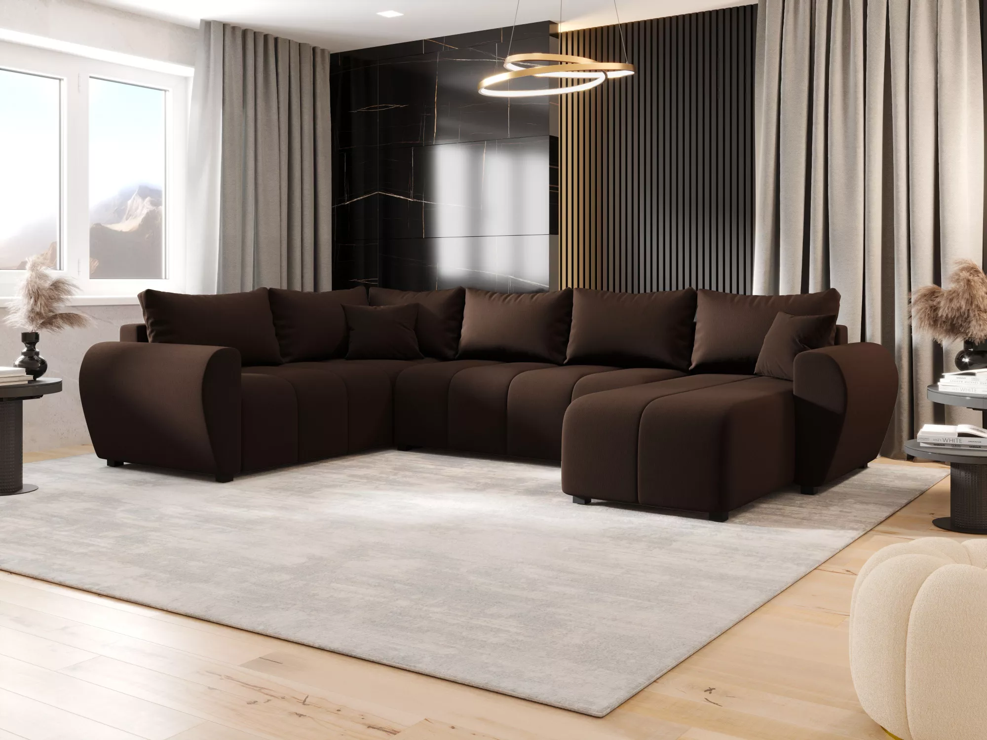 Rozkladacia sedacia súprava do U LUKAVA zapadne do všetkých moderných obývacích izieb. Operadlo vo forme voľne ložených vankúšov vám spríjemní každodenné používanie. Prispôsobí sa dispozičnému riešeniu miestnosti.