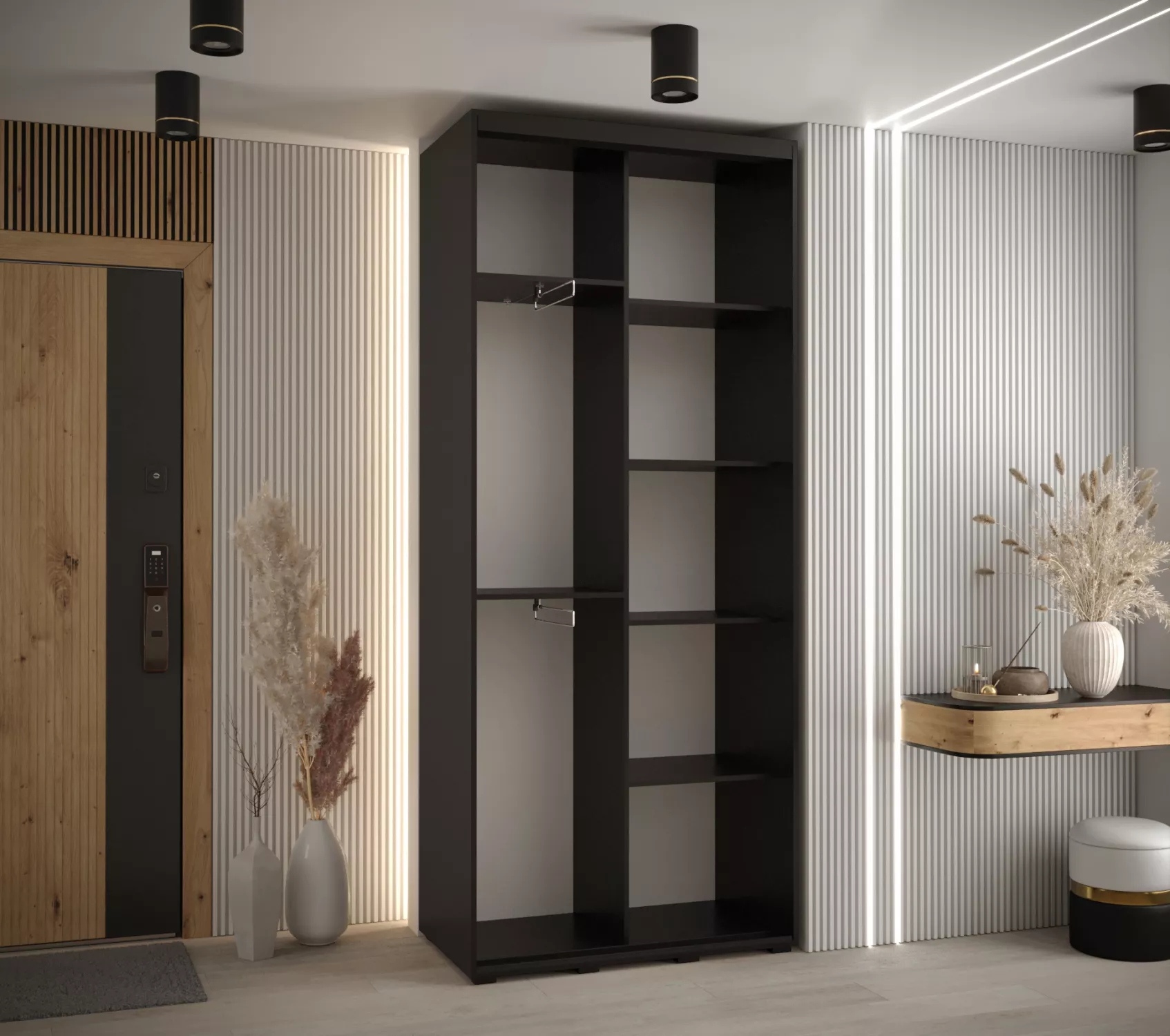 Šatníková skriňa ASIRI zaujme svojim moderným dizajnom a praktickými prvkami. Šatníková skriňa má posuvné dvere, ktoré sa neotvárajú do priestoru a ušetria tak veľa miesta.