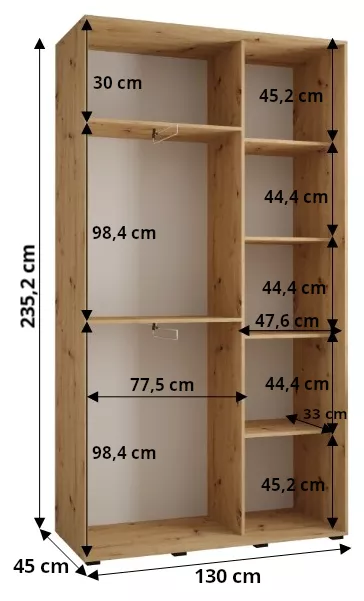 Šatníková skriňa ASIRI zaujme svojim moderným dizajnom a praktickými prvkami. Šatníková skriňa má posuvné dvere, ktoré sa neotvárajú do priestoru a ušetria tak veľa miesta.