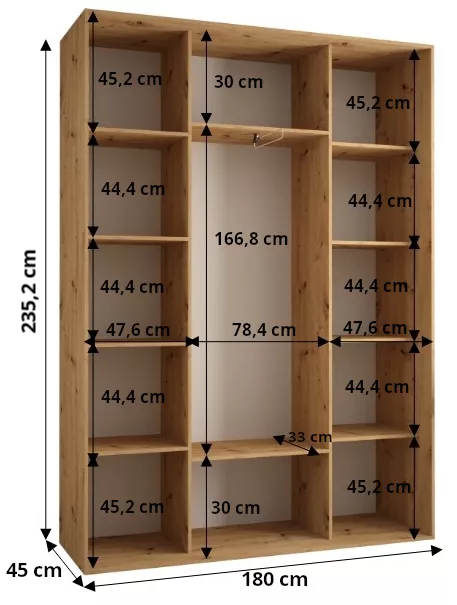 Šatníková skriňa ASIRI zaujme svojim moderným dizajnom a praktickými prvkami. Šatníková skriňa má posuvné dvere, ktoré sa neotvárajú do priestoru a ušetria tak veľa miesta.