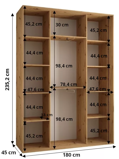 Šatníková skriňa ASIRI zaujme svojim moderným dizajnom a praktickými prvkami. Šatníková skriňa má posuvné dvere, ktoré sa neotvárajú do priestoru a ušetria tak veľa miesta.
