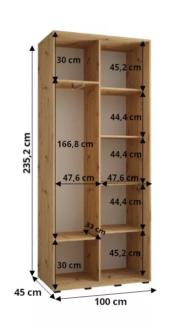 Šatníková skriňa ASIRI zaujme svojim moderným dizajnom a praktickými prvkami. Šatníková skriňa má posuvné dvere, ktoré sa neotvárajú do priestoru a ušetria tak veľa miesta.