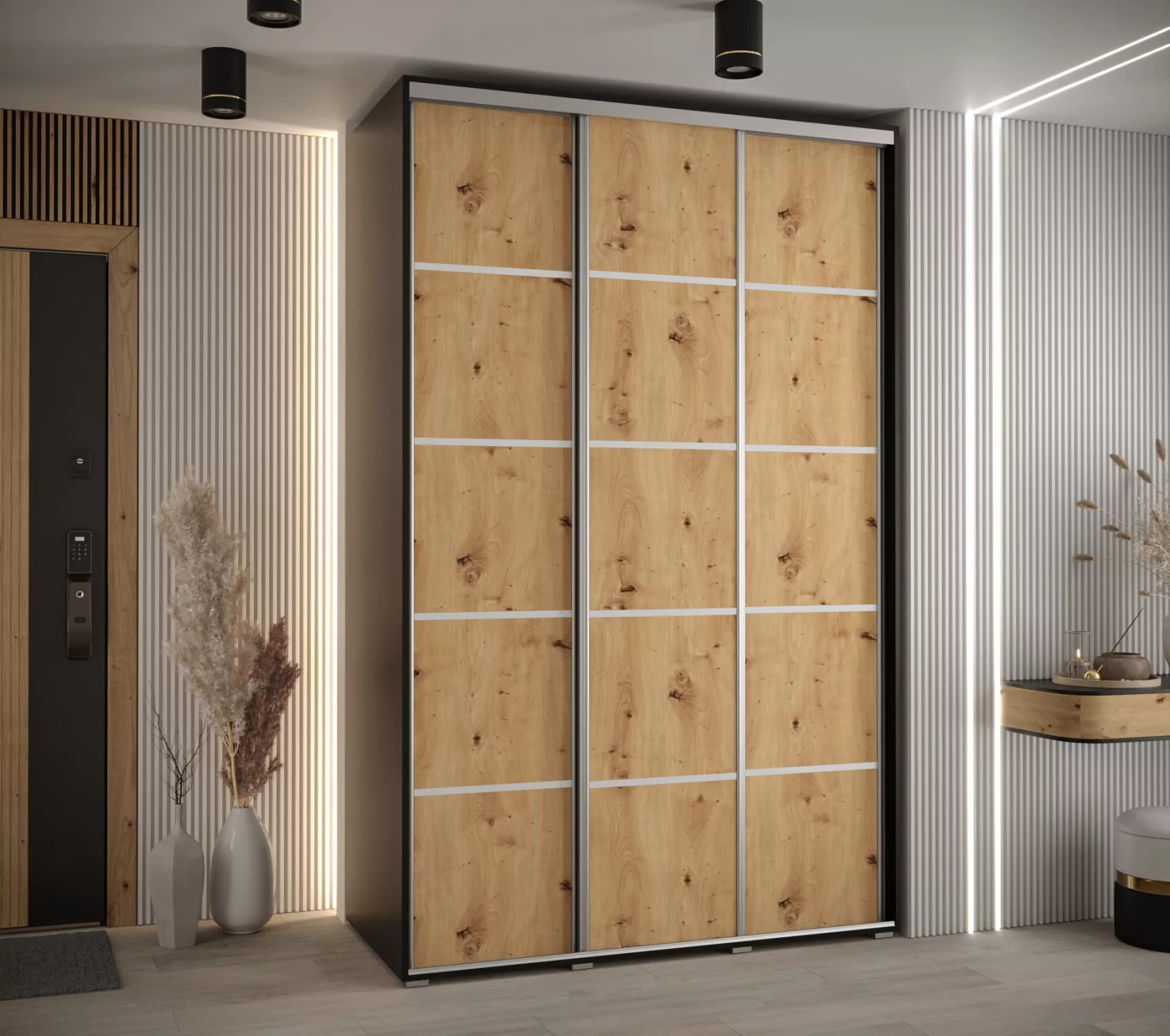 Šatníková skriňa ASIRI 4 - 150/45 cm, čierna / dub artisan / strieborná