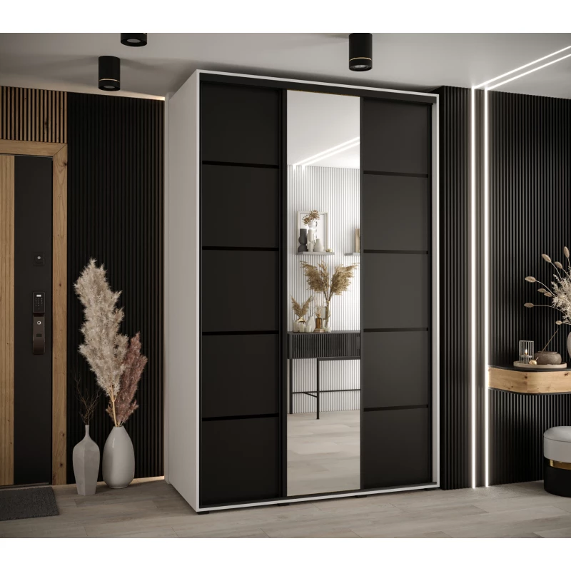 Šatníková skriňa ASIRI 5 - 150/45 cm, biela / čierna / čierna