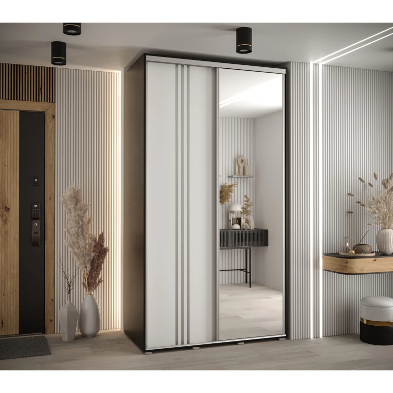 Šatníková skriňa ASIRI 7 - 130/45 cm, čierna / biela / strieborná