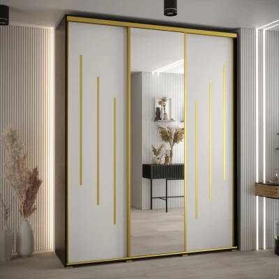 Šatníková skriňa ASIRI 9 - 200/45 cm, čierna / biela / zlatá