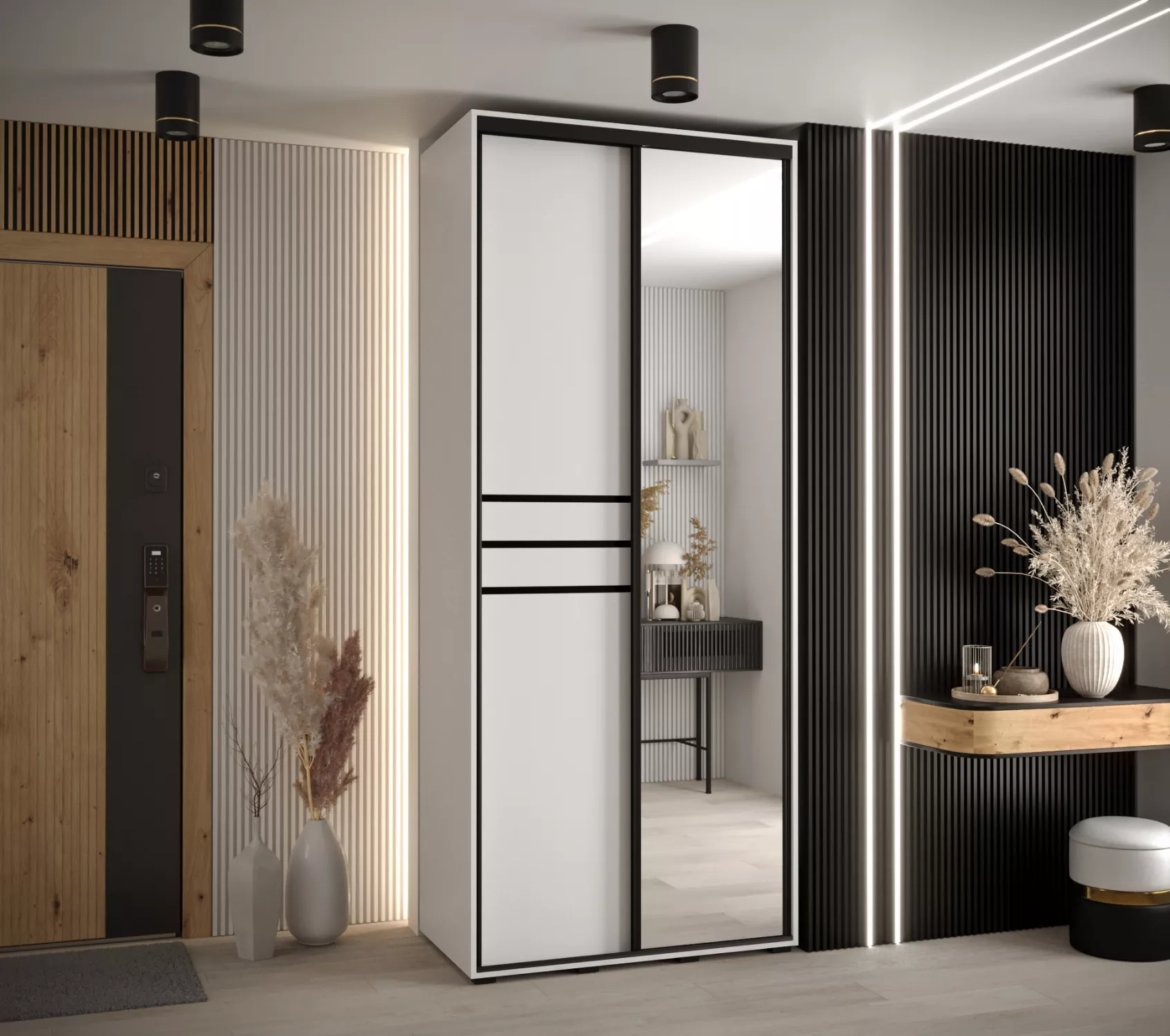 Šatníková skriňa ASIRI 11 - 110/45 cm, biela / čierna