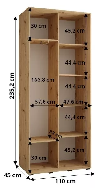 Šatníková skriňa ASIRI zaujme svojim moderným dizajnom a praktickými prvkami. Šatníková skriňa má posuvné dvere, ktoré sa neotvárajú do priestoru a ušetria tak veľa miesta.