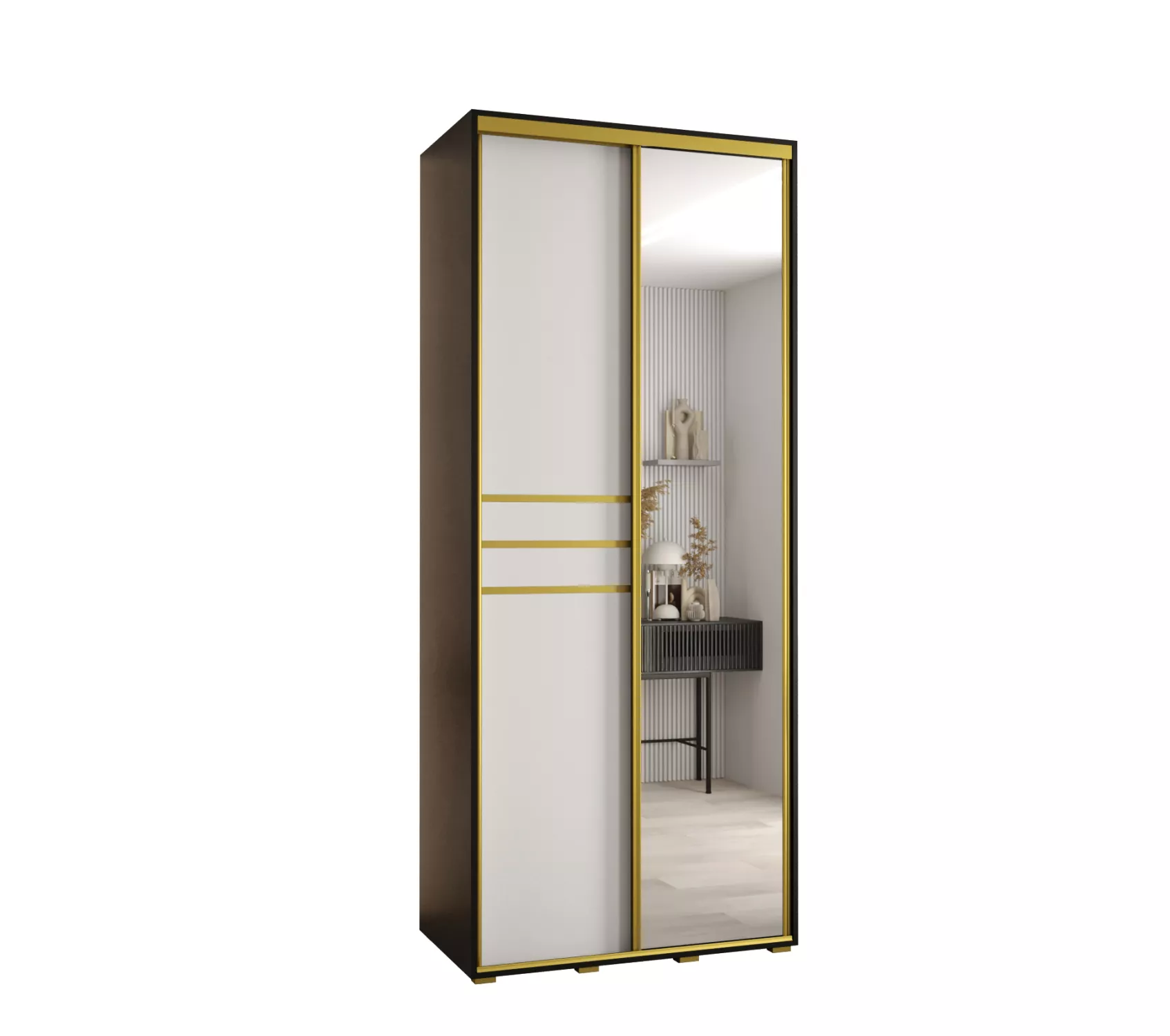 Šatníková skriňa ASIRI 11 - 120/45 cm, čierna / biela / zlatá