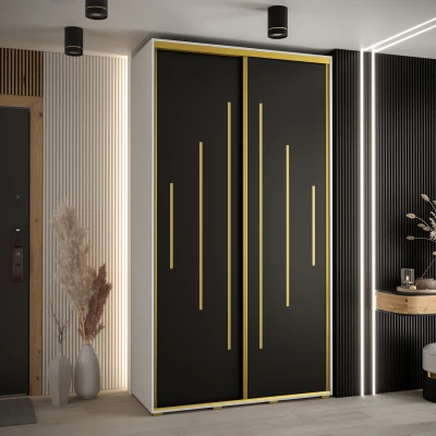 Šatníková skriňa ASIRI 12 - 140/45 cm, biela / čierna / zlatá