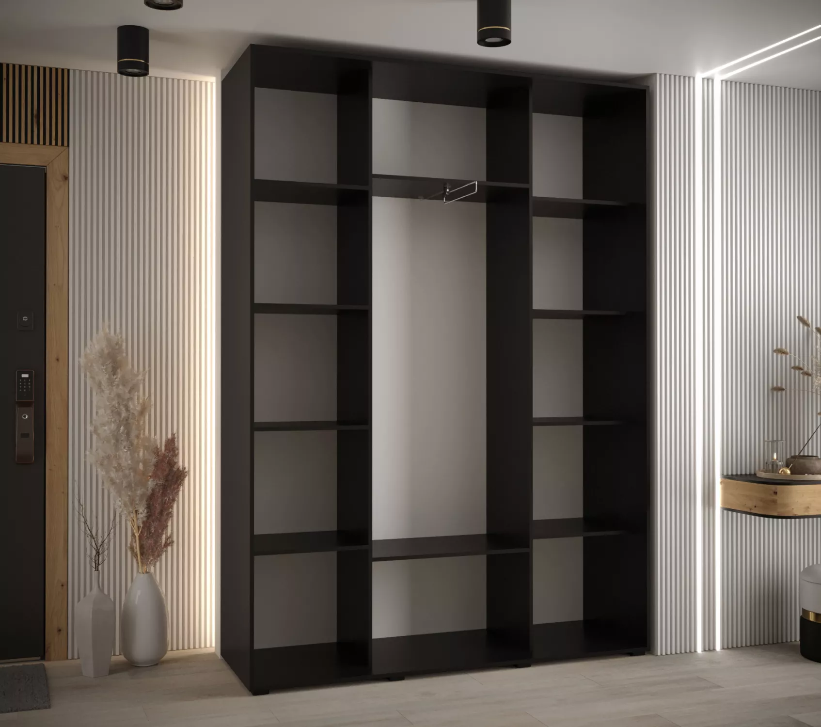 Šatníková skriňa ASIRI zaujme svojim moderným dizajnom a praktickými prvkami. Šatníková skriňa má posuvné dvere, ktoré sa neotvárajú do priestoru a ušetria tak veľa miesta.