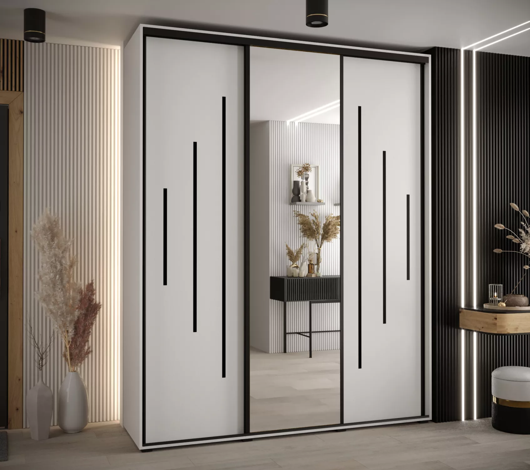 Šatníková skriňa ASIRI zaujme svojim moderným dizajnom a praktickými prvkami. Šatníková skriňa má posuvné dvere, ktoré sa neotvárajú do priestoru a ušetria tak veľa miesta.