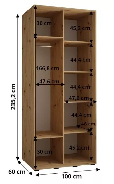 Šatníková skriňa ASIRI zaujme svojim moderným dizajnom a praktickými prvkami. Šatníková skriňa má posuvné dvere, ktoré sa neotvárajú do priestoru a ušetria tak veľa miesta.