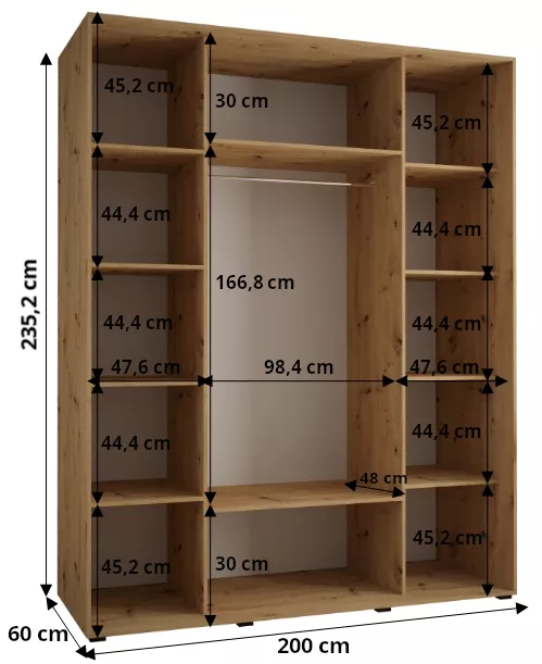 Šatníková skriňa ASIRI zaujme svojim moderným dizajnom a praktickými prvkami. Šatníková skriňa má posuvné dvere, ktoré sa neotvárajú do priestoru a ušetria tak veľa miesta.